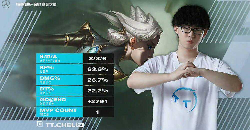 TT终于拿到了赛季首胜,同时也将压力抛到了LGD和OMG两队身上,而说到TT的获胜首功之臣,那一定非上单Chelizi莫属!第一局使用青钢影在和打野的配合下,好好给新人上单Invincible上了一课,也让他知道这就是“欢迎来到LPL的方式”。V5第二局换上了老将Aodi,他同样没能顶住Chelizi的攻势。两盘出色的表现,直接帮助TT打开了胜利之门。