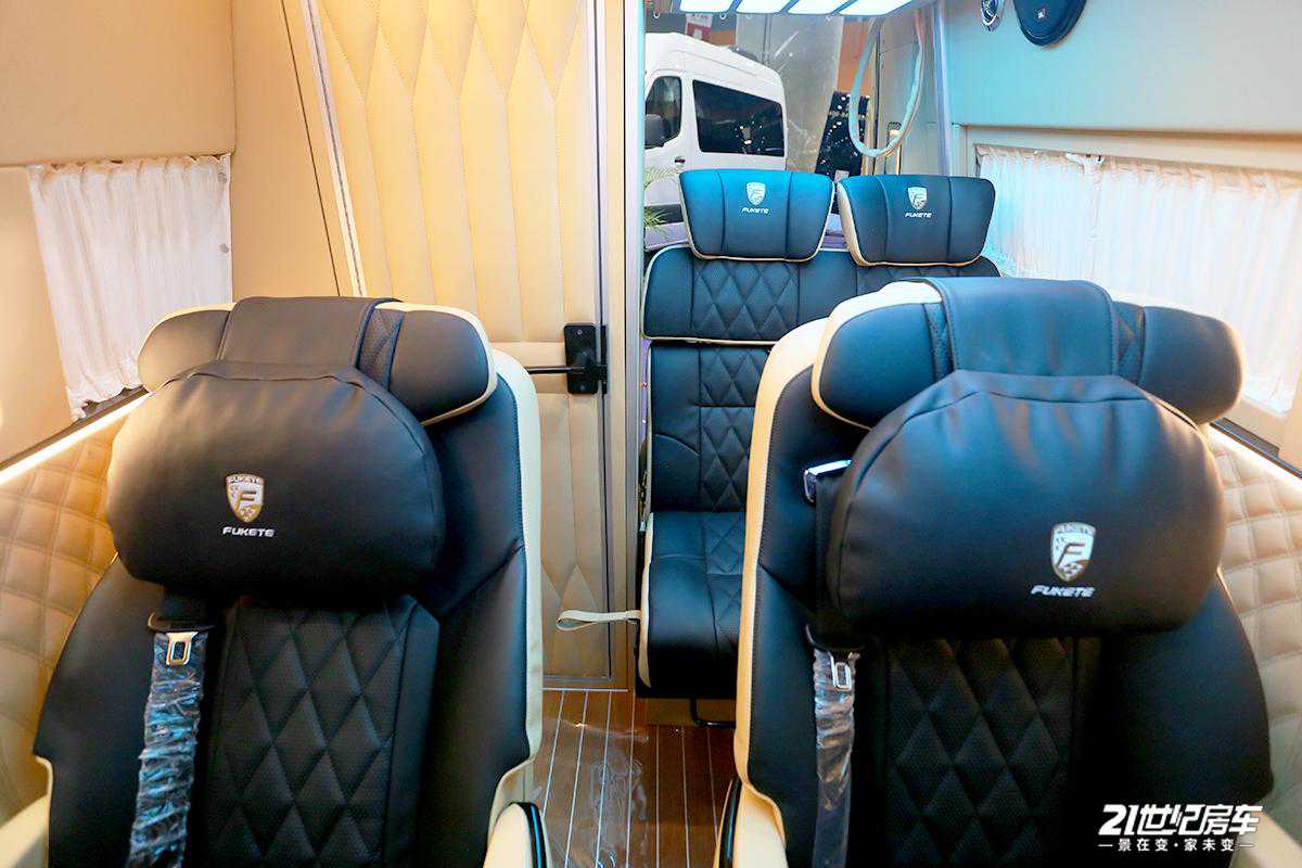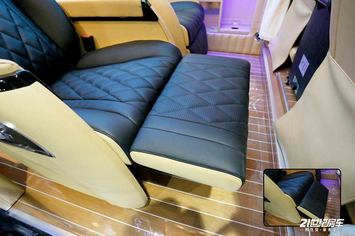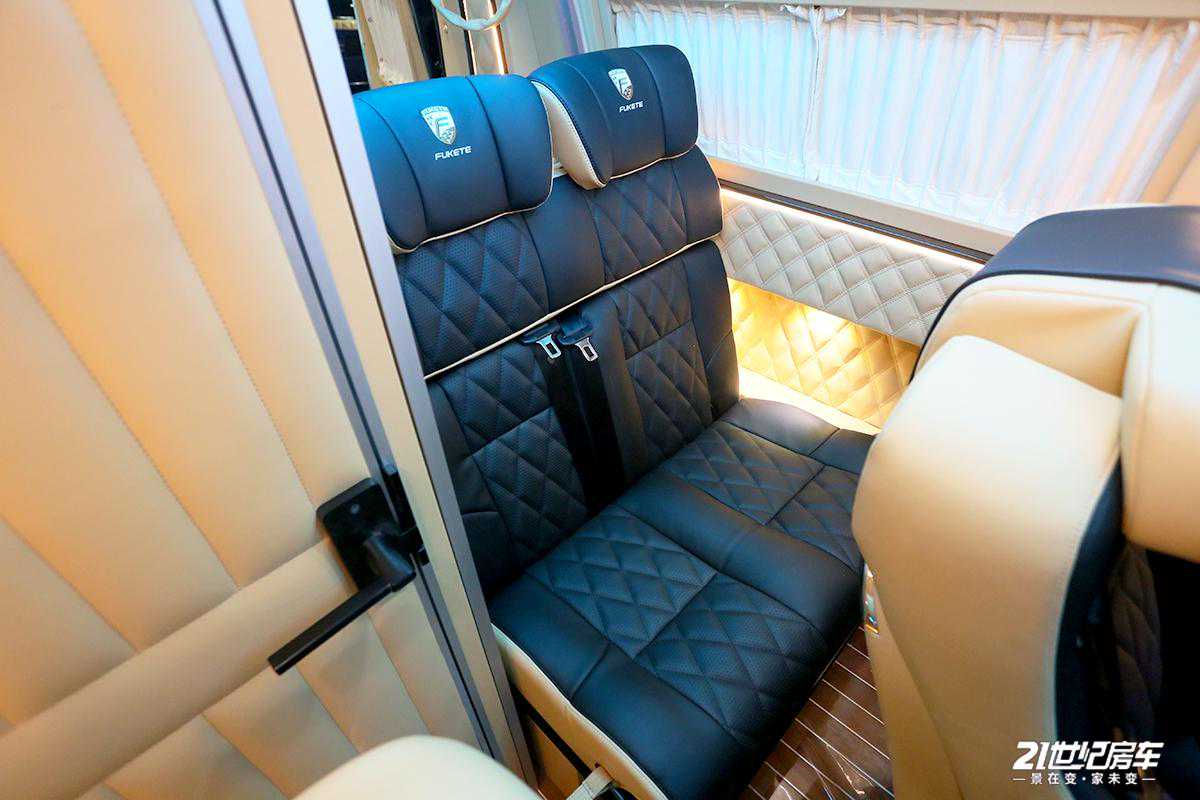 第二排多功能航空座椅后方是尾部可拼床座椅,日常作为单排双人卡座沙发,并配有安全带,可乘坐2人,加上其它座椅整车核载6人。