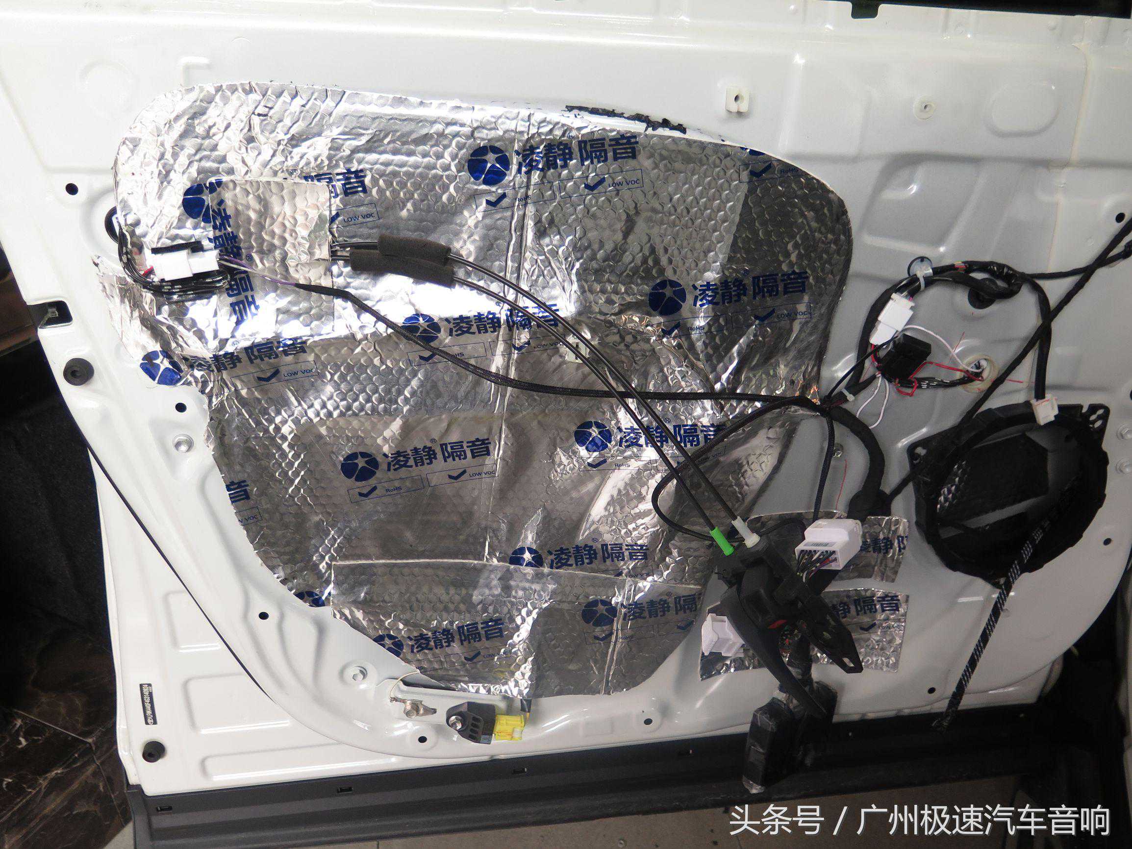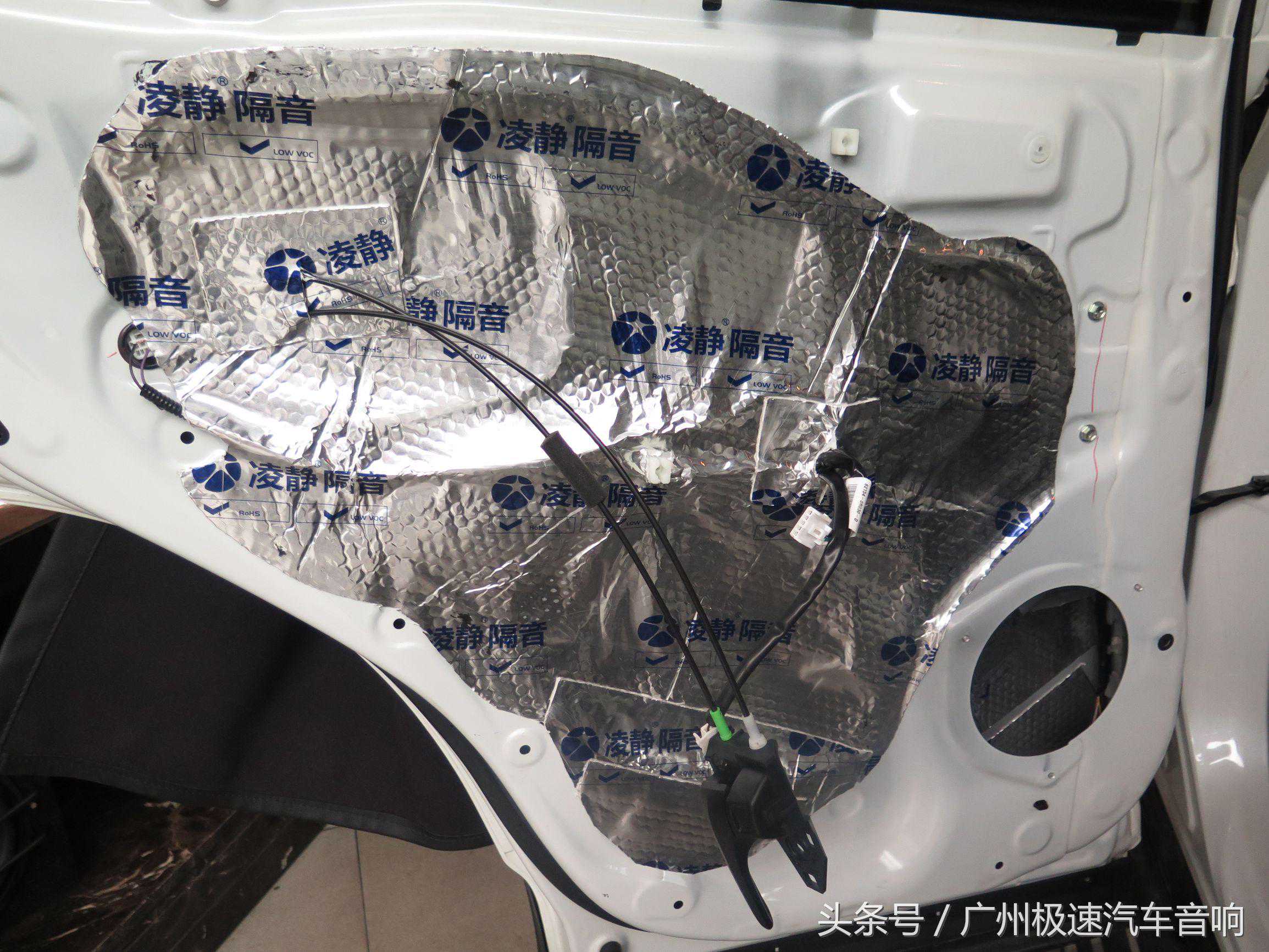 汽车音响改装,改装店都会建议车主做四门隔音,因为四门隔音不仅可以提升音质效果,还可以降低开车时风噪对人身体的危害。极速从不偷工减料,隔音做到最好让车主最满意,凌静的隔音材料绝对放心,采用的是环保材料丁基胶。完工后可以带给车主明显的体会。