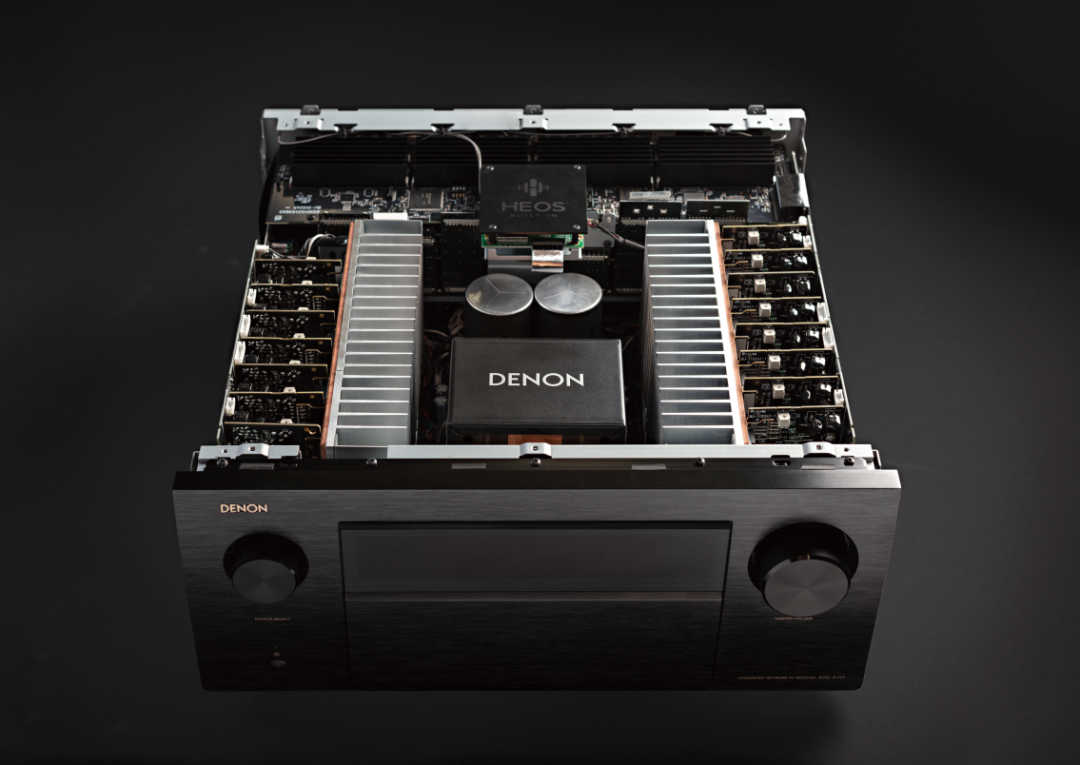 另外,A1H可以存储两个音箱预设,你可以存一个Dirac预设和一个Audyssey预设,或者一个用于DolbyAtmos,另一个用于Auro3D。或者在一个预设设置定向低频,在另一个上为标准低频。据说DENON正在研究在未来通过固件升级为旗下推出的AV功放增加更多预设的可能性,在大多情况下,音频将由新DAC模块处理,使用不少于10个ESSSabreES9018K2M芯片。这是一个2声道芯片,功放每个输出声道有一个DAC通道。控制接功放的流媒体平台的HEOS模块也是全新的。供应链问题迫使DENON必须设计一个新的电路板,公司正好利用这个机会升级到一个性能更高的电路板,它有一个新的HEOS处理器,允许一个更复杂的设置菜单,1080p的图形用户界面,以及一个全新改进的设置助手,可以引导你完成系统设置,甚至一些还带有功能注释。前级放大电路板已转为四层设计。工程团队此次做了相当大的努力,以尽量减少每个点的噪音污染。其中包括为功放的不同部分设计独立的电源,以及为不同功能设计独立的电路板。