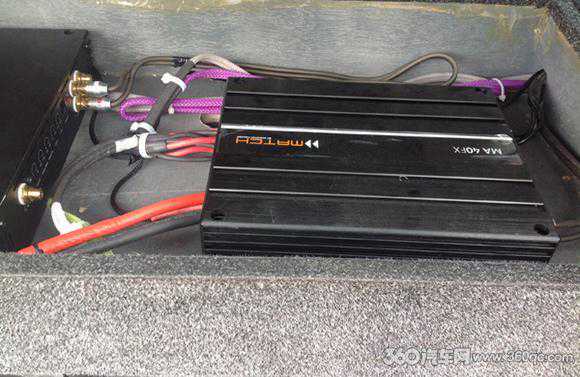 德国麦仕MA40FX功放、德国喜力仕SPXL1000功放吊顶安装在后排座椅与尾箱的交界处上方