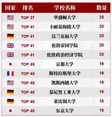 奥地利(21人)、意大利(20人)、波兰(14人)、挪威(13人)、丹麦(13人)、匈牙利(13人)、以色列(12人)、澳大利亚(12人)、比利时(11人)、南非(10人)、印度(10人)、爱尔兰(7人)、西班牙(7人)、中国(4人)。