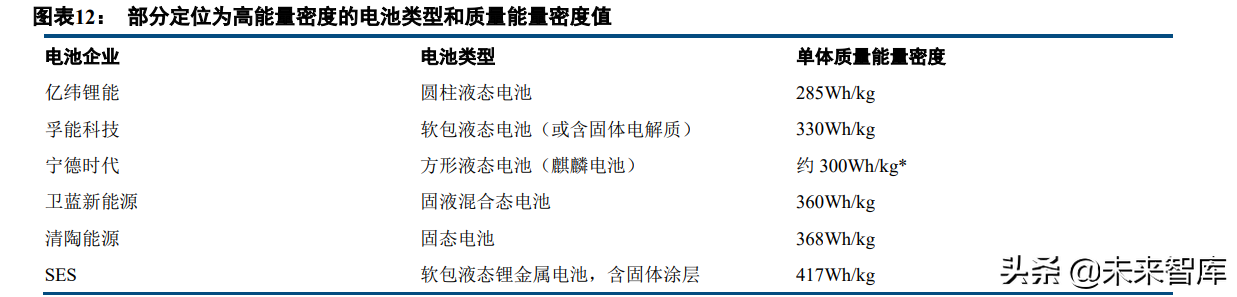 固态电池研究者一般认为,固态电池的能量密度更高、安全性更强。对部分公开数据进行比较,固态电池确实在一定程度上具备较高质量能量密度。