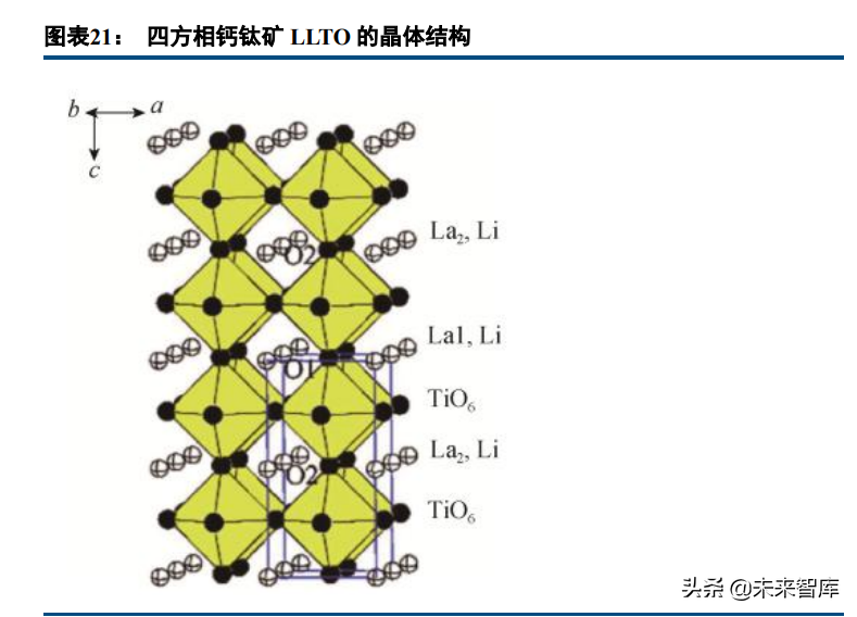钙钛矿(通式ABO3、物质CaTiO3)结构是经典的无机晶体结构之一。在固体电解质领域,以镧、锂替代钙形成的锂镧钛氧化物(LixLayTiO3,LLTO)随合成条件、组分不同有立方、四方、正交等多种晶体结构。