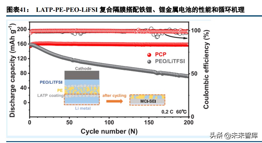 有研究者构建了铁锂正极-PEO-LiCF3SO3-LATP电解质-锂金属负极的材料体系,制成电池后在60度、0.5C倍率下循环,也取得了约1000次的循环寿命。当然另一方面,该电池的正极有效容量随倍率性能提升衰减较明显。