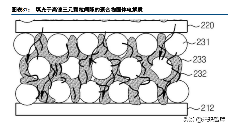 公布于2020年的专利CN112055909A描述了在电极材料之间填充聚合物固体电解质以改善电极-电解质材料接触的方法。从实施例看,正极使用高镍三元材料,并和PEO-LiFSI(溶剂丁腈,不同温度-时间退火干燥)复合,孔隙率约10%-超过20%;固态电解质层同样使用PEO-LiFSI;负极使用锂金属。实施例在4V截止电压下的放电比容量接近140mAh/g,低倍率循环30次后容量保持率在70%以上,优于比较例。