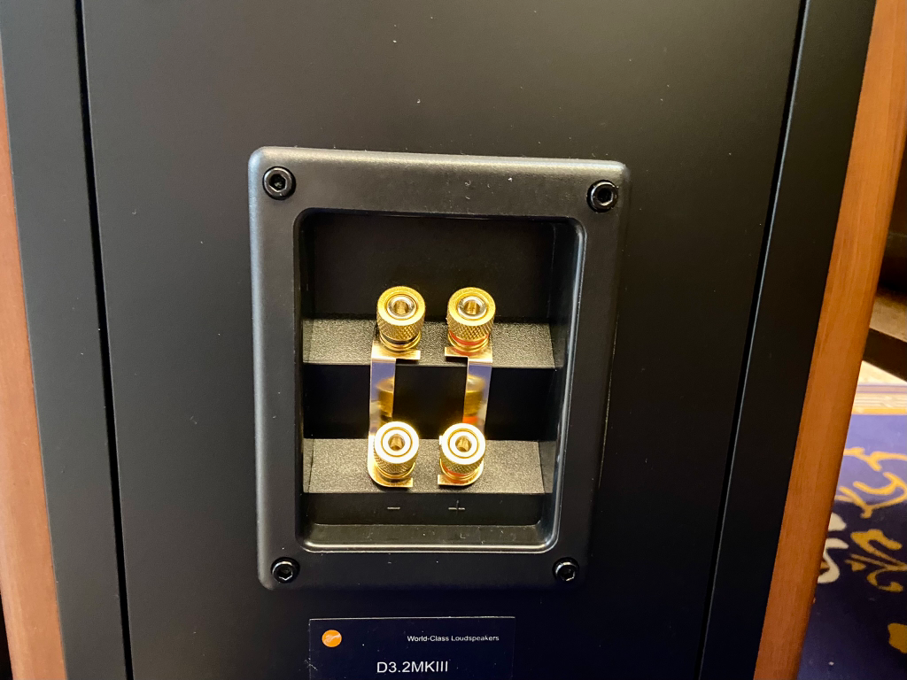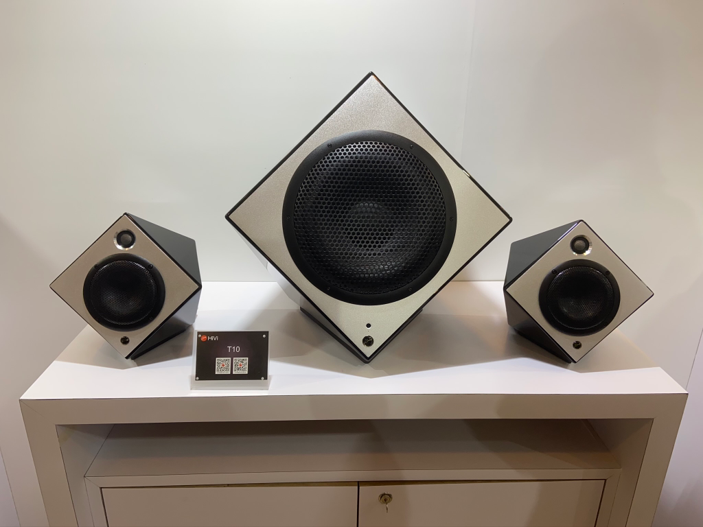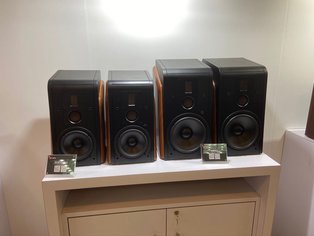 从这个角度可以一眼认出这是惠威的箱子,惠威箱体采用了倾斜式设计,前障板向后倾斜的仰角设计,可让三频段声波同时到达处于坐姿时的人耳,相位精准。