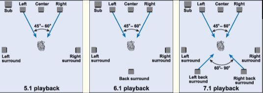 而在蓝光机没有出来之前,杜比trueHD和DTSHD发布之前,当时的7.1声道都是基于5.1或6.1的原始录音,然后用功放的算法升级为7.1声道重放。所以,当时的两个后置环绕一般在摆位上都比较靠近。那是因为他们本来就是一个声道。