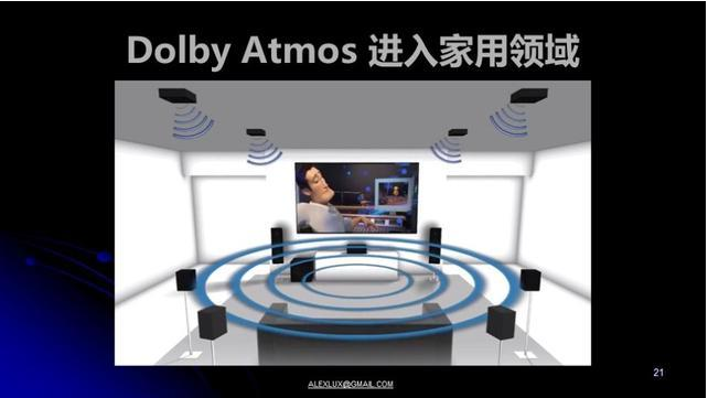 然后,你用的多少声道的家庭影院,功放自动运算,把这些声音分别送到相应的声道放出来就行了。杜比ATMOS全景声就是第一个运作这个技术的格式,同时为了让声音更逼真更有带入感,杜比ATMOS还加入了头顶上的天空声道。