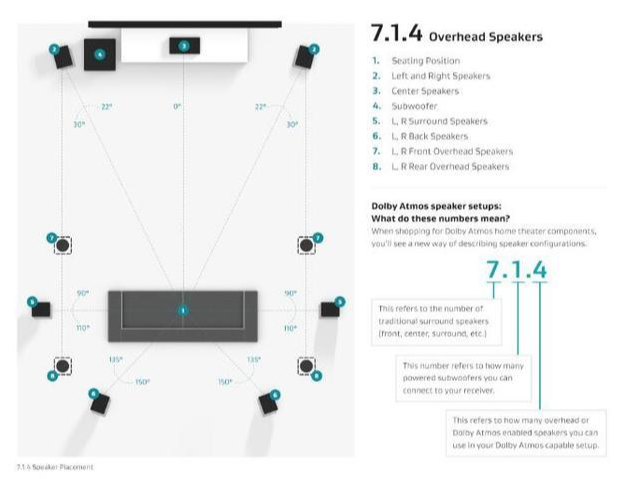 不管是5.1、7.1还是全景声应该怎么摆位,大家都应该明白了。在此我只提醒一点——如果是沙发靠墙的用户,就不要去追求7.1的后环绕了,如果音箱和听音位拉出不距离的话,是没有用的。