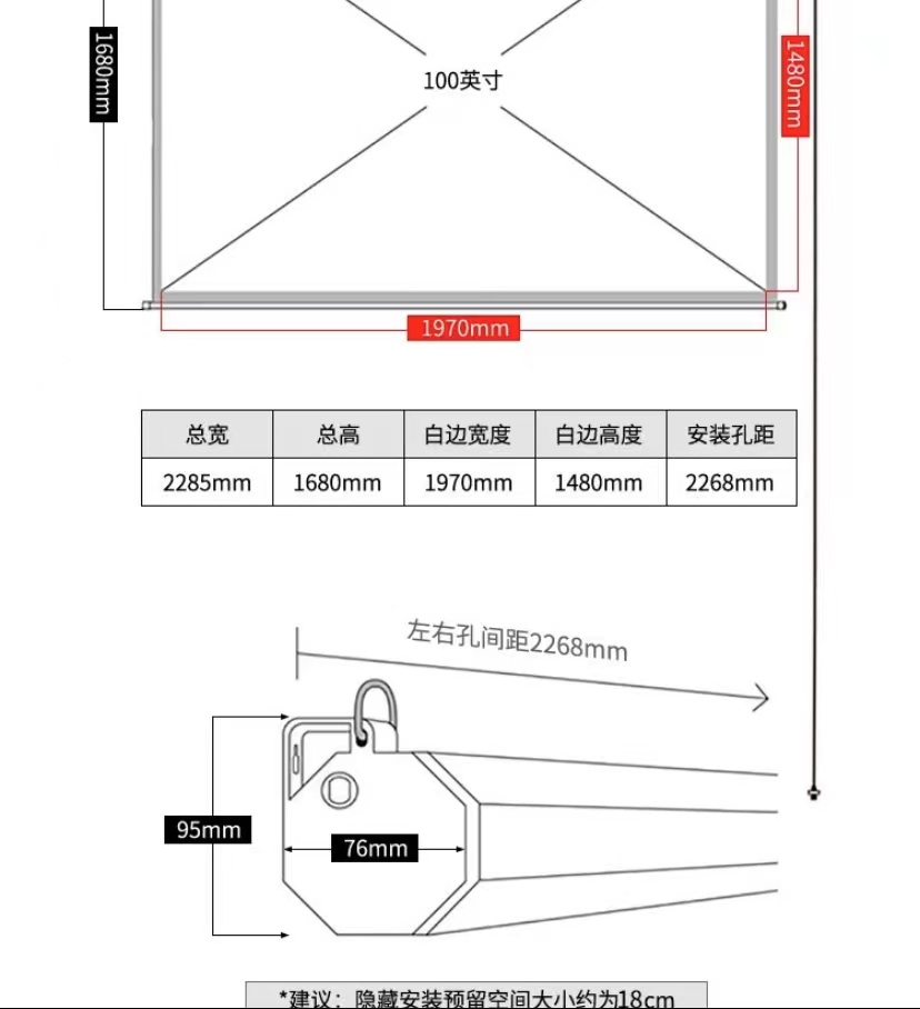 具体尺寸可以根据你选择的幕布来,电商详情页一般有尺寸。