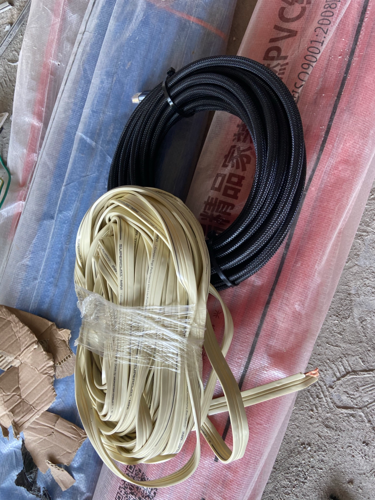 环绕音箱线买的是840芯的美国怪兽的环绕喇叭线,使用的是无氧铜导体,抗拉钓鱼丝工艺,外面使用了双层LPE保护层,用了几年也还不错。