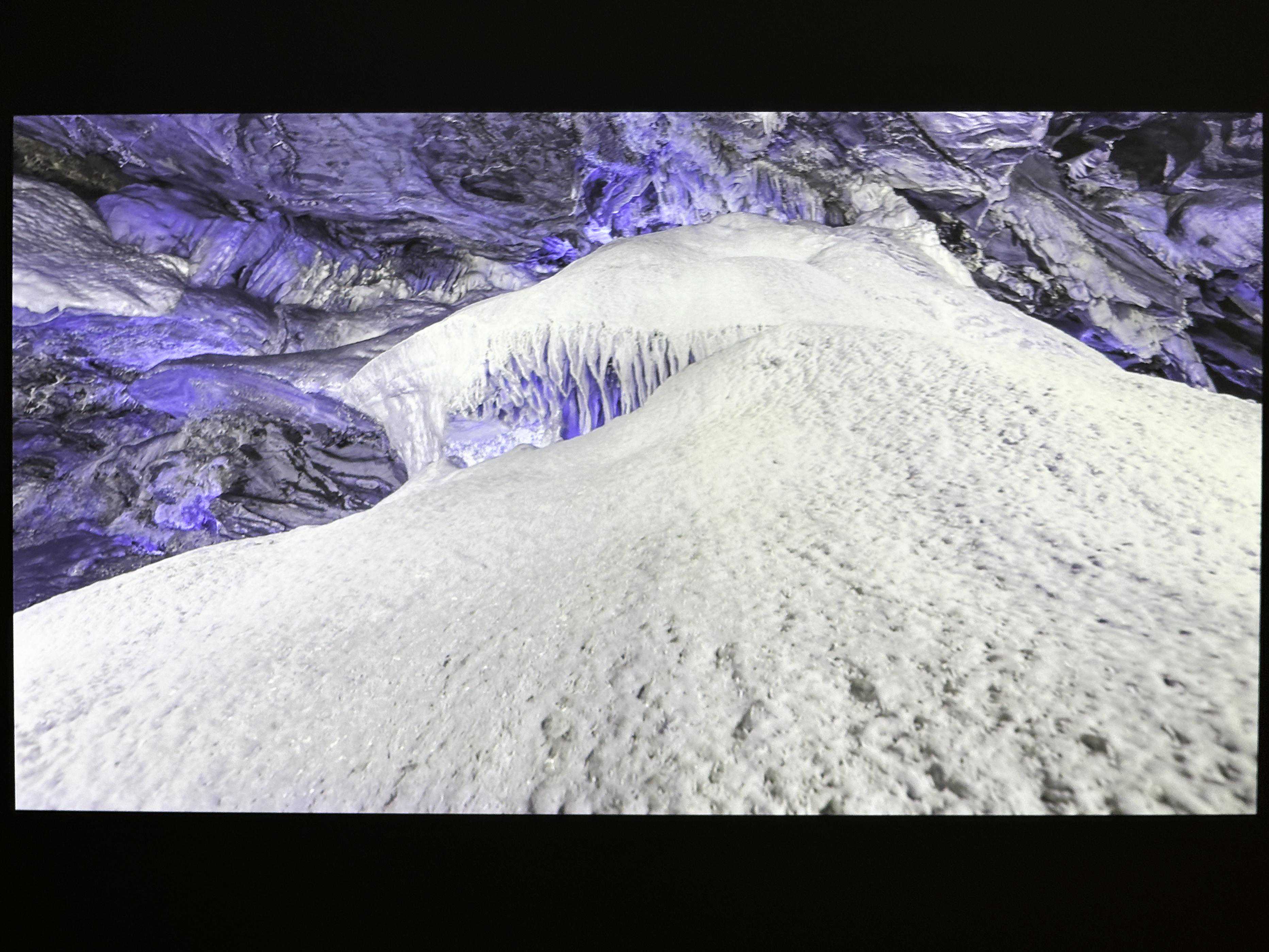 这个是高饱和度,高曝光的雪地场景,得益于这台投影的高亮度,可以看到左上角十分明亮。而左下角则是深色,这个在这张画面中,明暗对比强烈,细节显示得很完整,整个画面很细腻,实际用眼睛看是很舒服的。