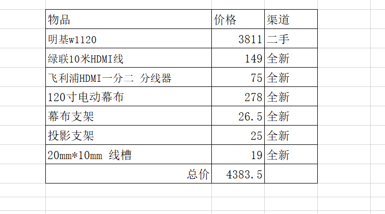 上面价格没有计算回音壁或者功放,大家可以再自行选择,个人觉得对音质要求不高的,不用功放和回音壁也可以的,投影仪自带的音响效果也还可以: