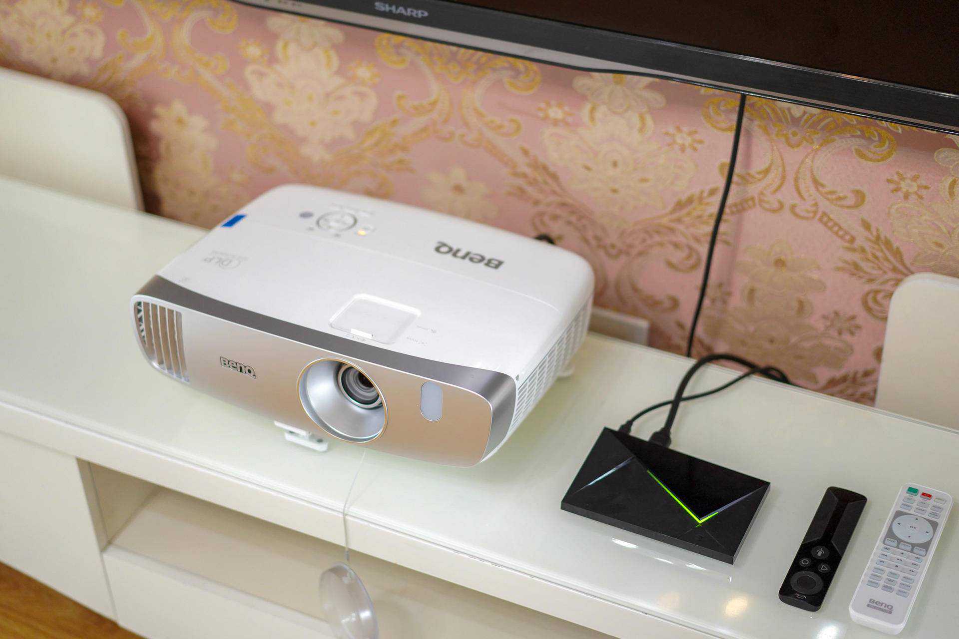 三、在不安装幕布的情况测试明基w1120投影仪的效果。
