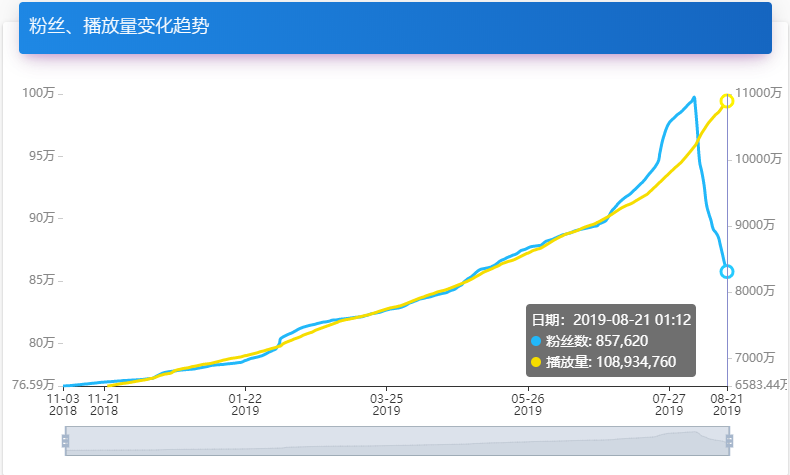B站官方账号的粉丝数已经从最高的接近100万狂掉至86万,其在YouTube上的两个官方账号也有不同程度的掉粉。