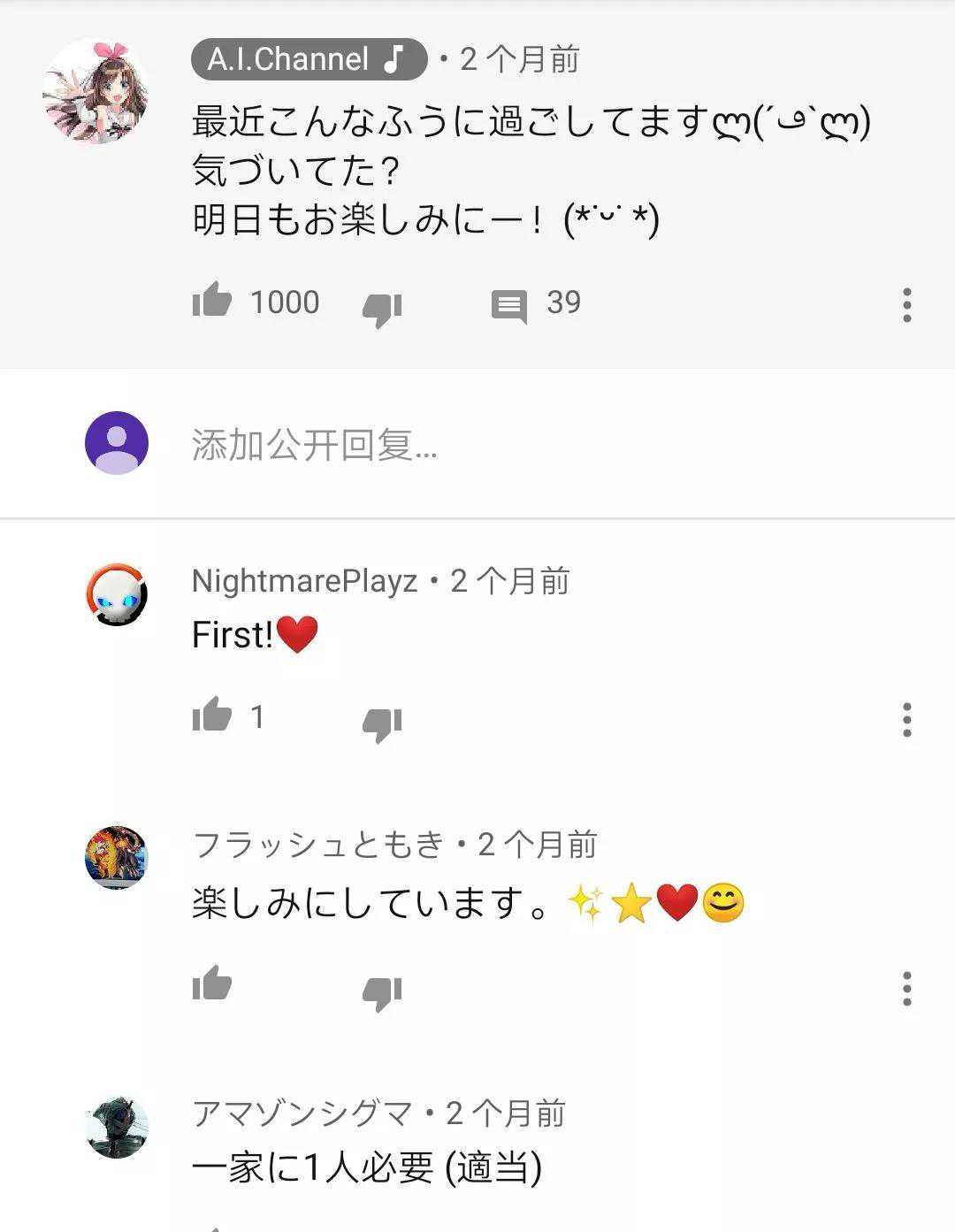 写在结尾就在官方声明发表的当晚,“初号爱”在没有预告的前提下突然在YouTube进行直播。一些粉丝认为在本次直播中的末尾处,“初号爱”疑似出现了哭腔。