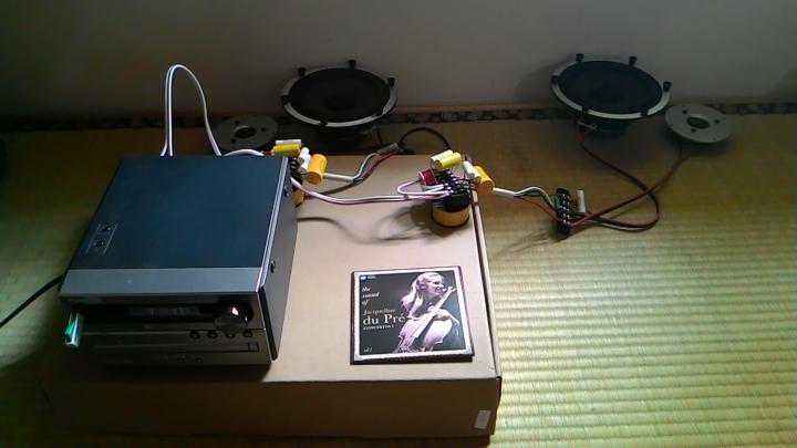 但是再修改分频器的过程中,兴起了自己设计分频器的念头,试做第一对2音路2阶分频器再加上低音的阻抗稳定线路,用便宜的组合音响听DUPRE的大提琴煲单体,顺便进行自己的第三对2分频低音反射式音箱设计。