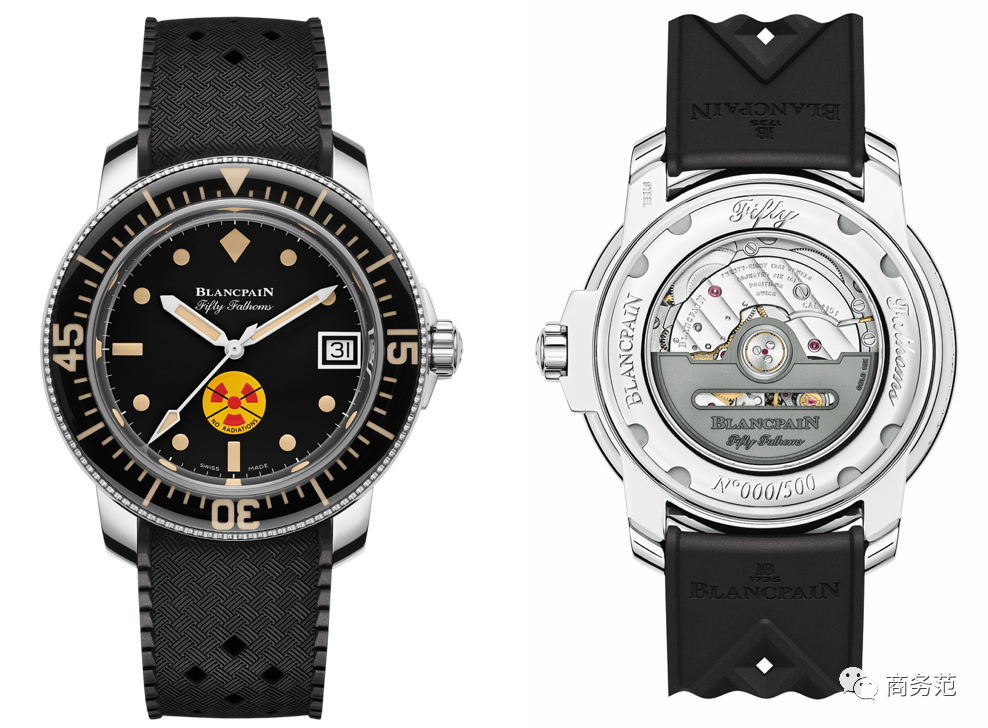 宝珀的五十噚有多火,就不用多说了。今年宝珀新发布了一枚五十噚系列“无辐射标记”腕表,限量发售500枚,很值得收藏一波~