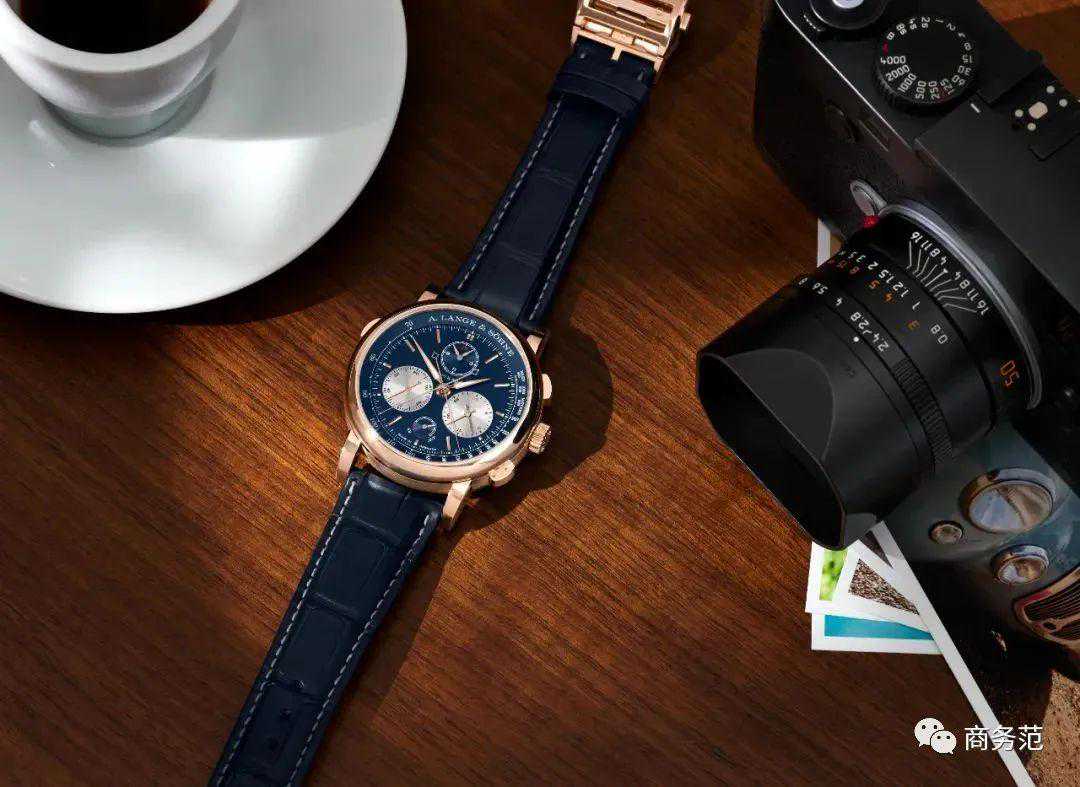 值得一看的还有配备18K玫瑰金表壳和蓝色表盘的TRIPLESPLIT三重追针腕表。