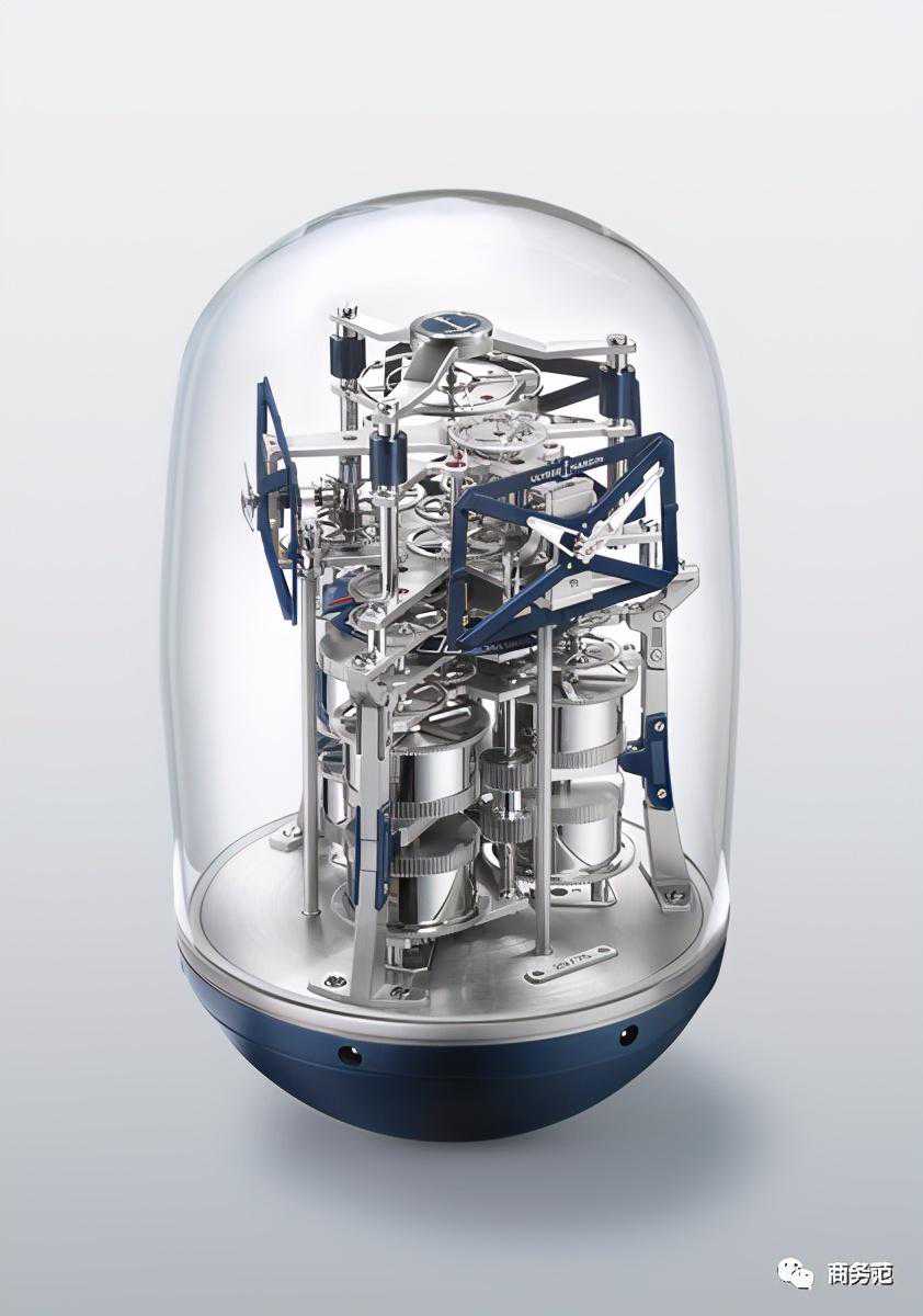 这个座钟呈“茧”状,全透明玻璃罩里含有675个零件,能同时显示3个时区的时间,动力存储高达1年(毕竟有6个大型发条)!