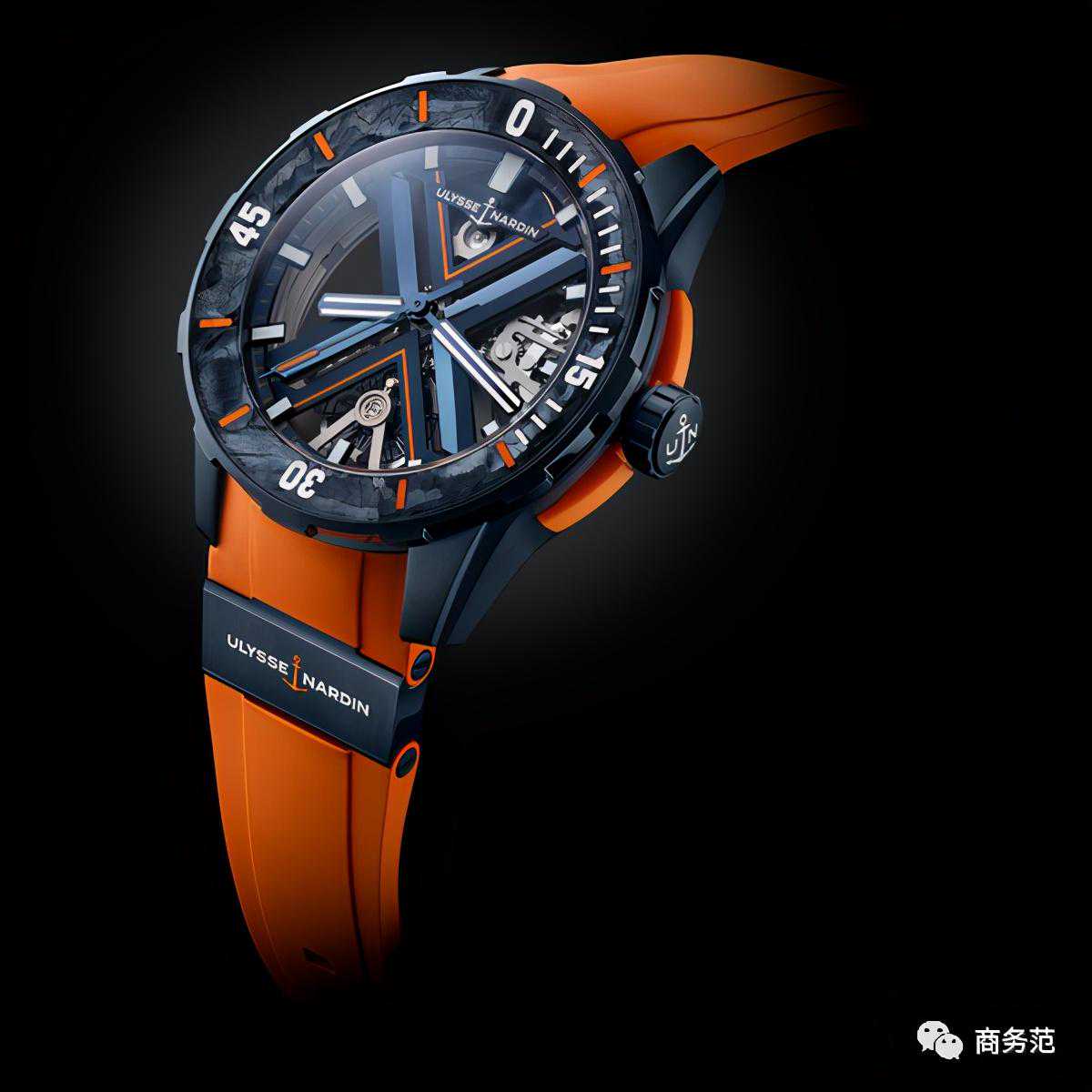 除了这款前卫的“座钟”,雅典还推出了潜水系列DIVERX的镂空版本。这枚腕表机芯夹板呈现品牌标志性的X造型,蓝橙配色十分炫酷↓