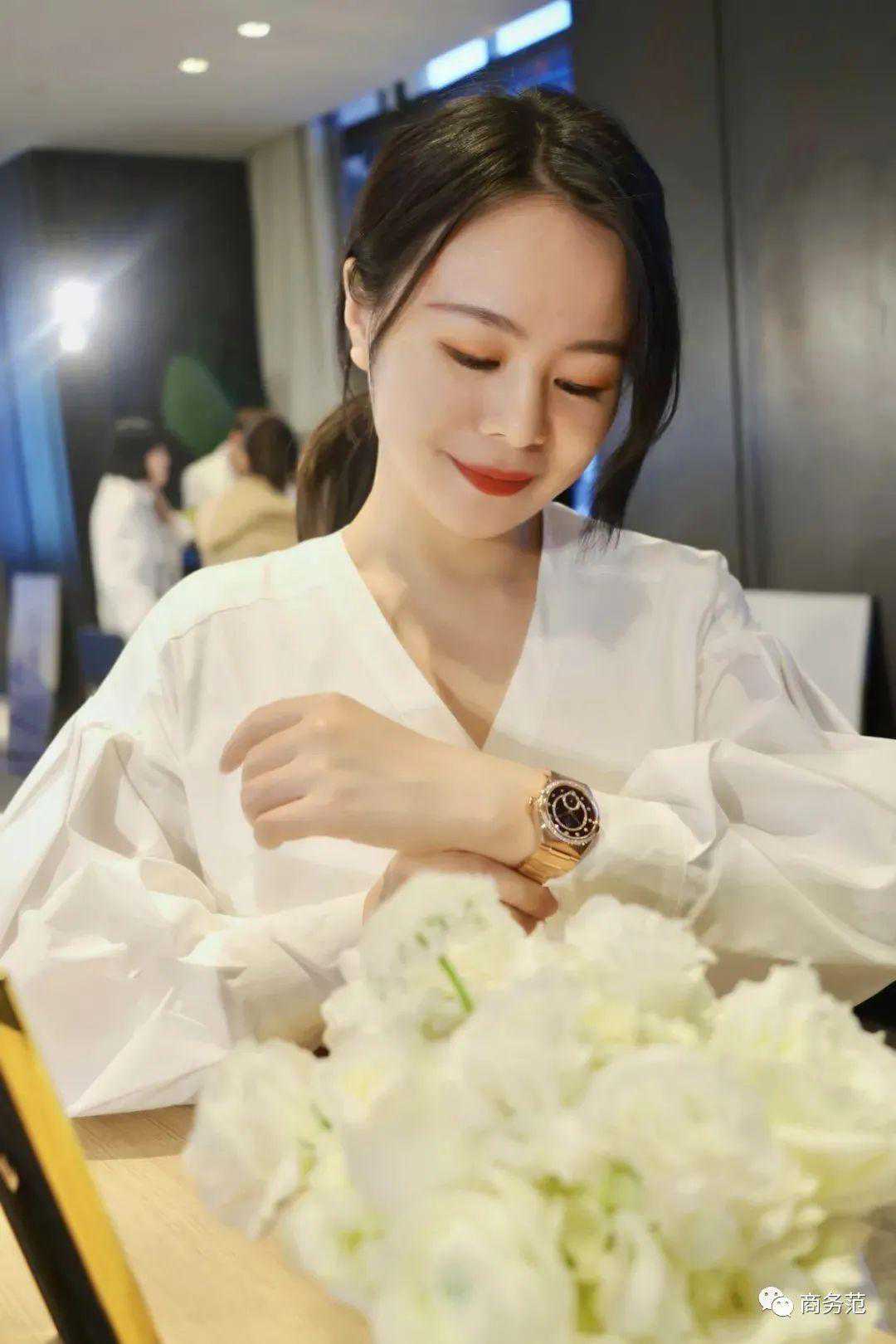 表圈镶嵌着56颗明亮型切割钻石的LANGE1小型款月相腕表,更显华美璀璨。范主在参加朗格线下预览的时候,把它拿在手中,就像萨克森星空在手中绽放,超级梦幻~