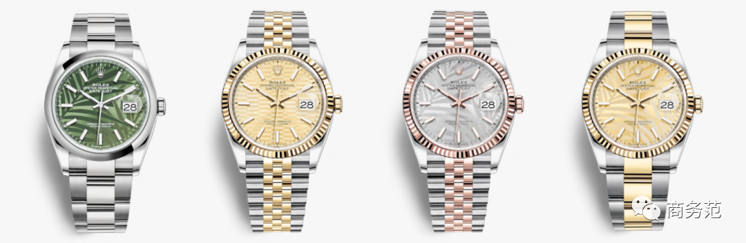 劳力士今年推出了四款蚝式恒动日志型36,表盘采用了棕榈叶和劳力士标志性坑纹图案,有橄榄绿、银色、金色可选,官方定价55000元。