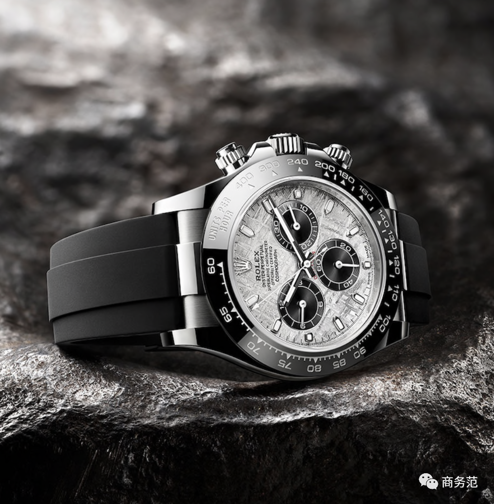 新推出的蚝式恒动宇宙计型迪通拿,则配备了金属陨石表盘。