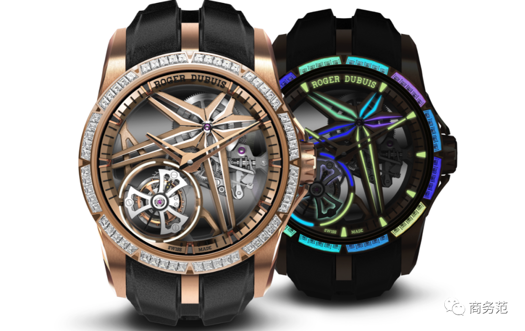 除此之外,罗杰杜彼还推出了全球首创、限量发行8枚的崭新Excalibur流光溢彩腕表。