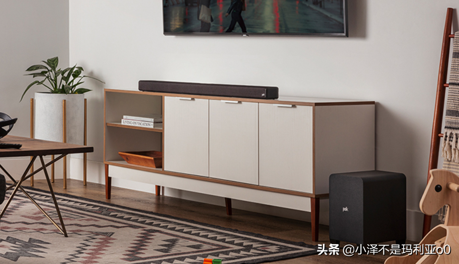 ▼回音壁跟传统的家庭影院相比简直太节省空间了,低音炮可以摆放在距离回音壁三十公分内的电视柜旁边,也可以直接摆放在沙发后方,特别适合小户型家庭。