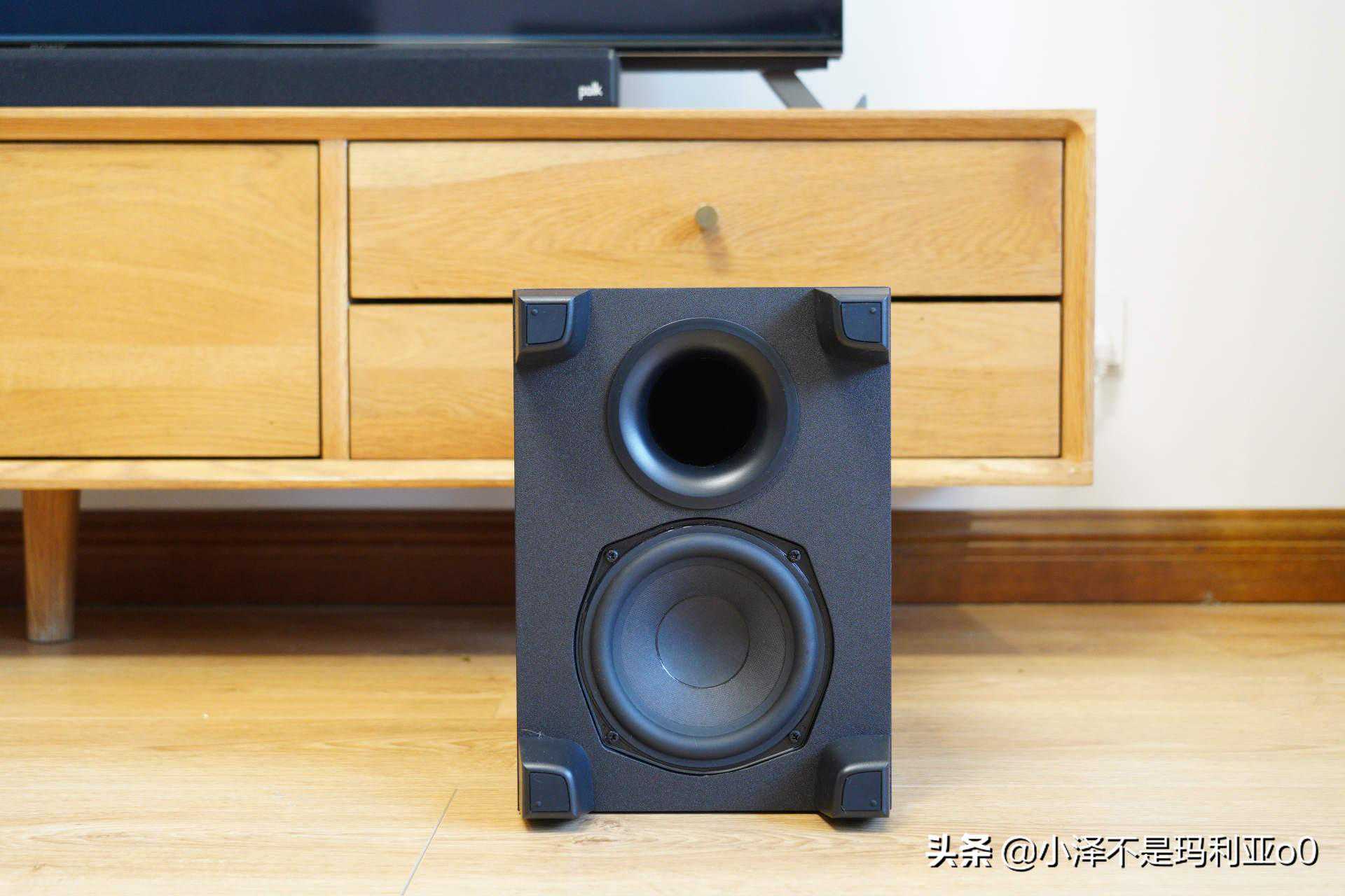 ▼PolkSignaS4是一款真·全景声产品,它由一支条形回音壁和一个低音炮组成,总功率80W,发生单元多达8个,包含回音壁上的1个1×1"全频单元,2个1"高音单元,2个1.25×4"中高频单元以及两个2.5"上反射单元,以及一个5.25"的大尺寸低音炮来提供澎湃的低音,以上这些多频声道共同组成了这套5.1.2音响系统。