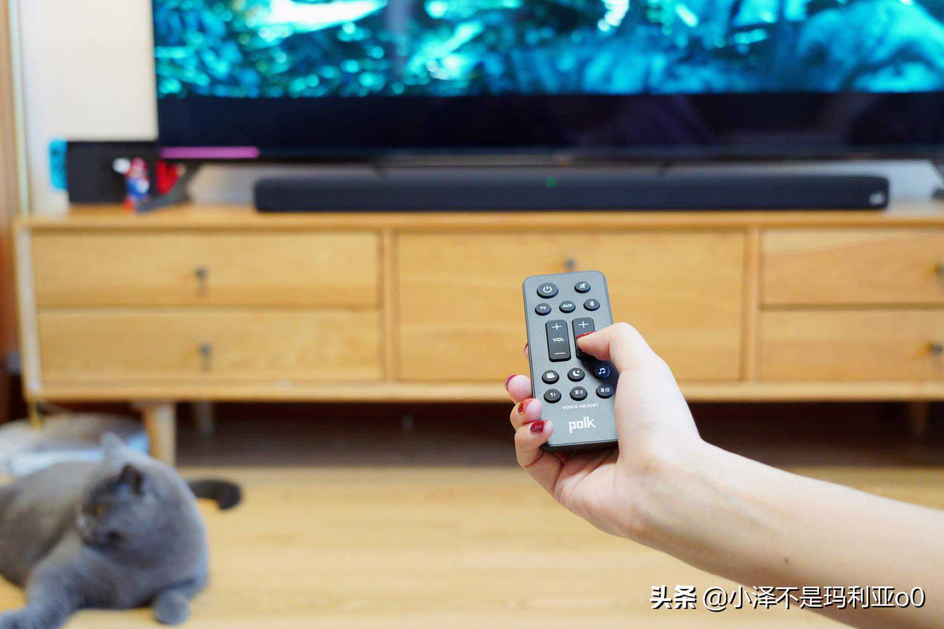 ▼按下电视遥控器的音量键就能控制回音壁的音量,高度适配性使得后期只要使用一个遥控器就能完成全部操作,使用起来相当便捷。