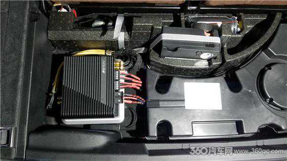 德国伊顿四路功放,体积特别的精巧,安装在后尾箱底板下的空闲位置,即不占用空间也不会留下改装痕迹。推动前声场的伊顿PRO175两分频,后声场喇叭则由原车配置的功放进行推动。功放的接线上也全都采用了竞赛级标准进行施工,接口都进行了保护与固定,使得众多线材都能够井井有条。