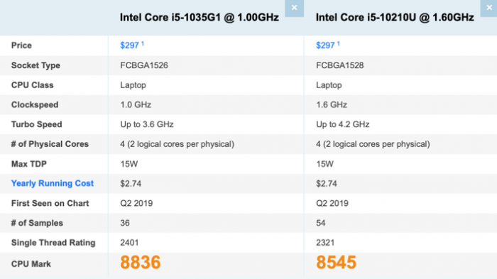 现在市售的轻薄笔记本大都喜欢搭载基于14nm工艺制程的十代酷睿i5-10210U这款处理器,我们从国外专业测评网站PassMark拿到了十代酷睿i5-1035G1和i5-10210U的对比测试分数,可以看到不论是单核还是综合得分,十代酷睿i5-1035G1都要比i5-10210U高出一些,性能上自然也会更强,这也从侧面说明联想YOGAS740-14虽然是轻薄本但是相比于市面上在售的十代酷睿笔记本来说定位要更高,性能也更强。