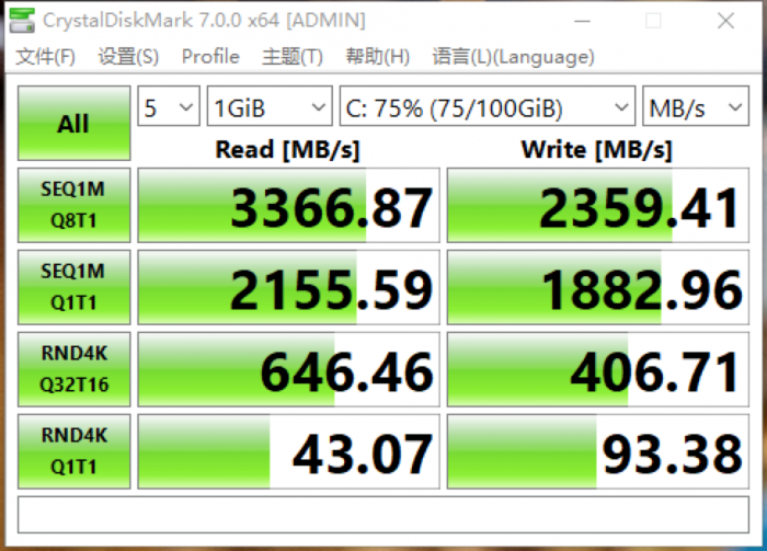 通过对联想YOGAS740-14内置512GBSSD的连续擦写,可以看到读取速度为3366.87MB/s,写入速度为2359.41MB/s。这个读写速度已经相当不错了,小编在日常使用的时候也感到非常流畅,512GB大小也足够日常办公和娱乐使用,值得一提的是这块儿硬盘采用了可拆卸设计,用户后期可根据自身需求进行升级。