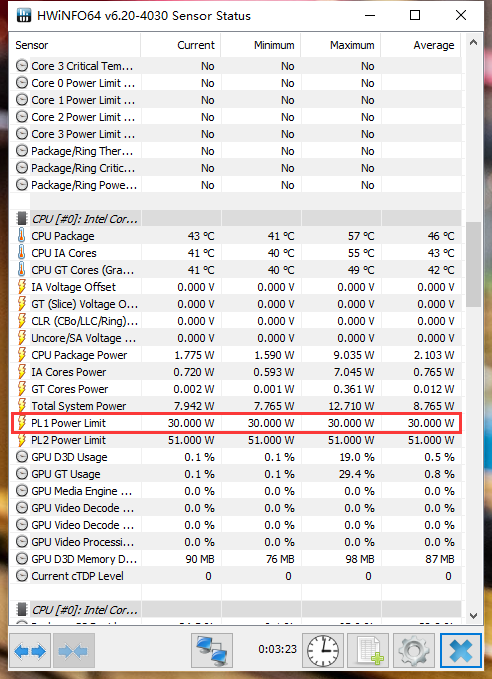 通过HWiNFO64,我们可以看到在充分释放性能的“野兽模式”下,十代酷睿i5-1035G1的PL1为30W,我们知道这款处理器的标称TDP为15W,配置TDP最高不过25W,而联想YOGAS740-14通过调校能在“野兽模式”下让处理器功耗突破30W,自然电脑的性能也会更高。