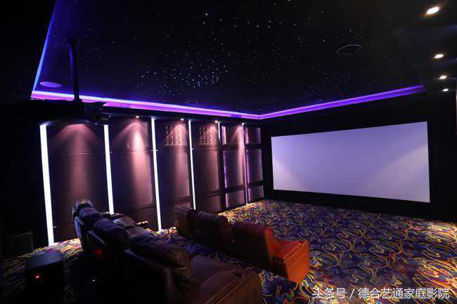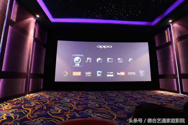 4、声学处理采用模块化的设计,整个房间两侧墙与后墙体中使用了多种声学扩散模块,并辅以吸音棉,使房间内声场达到吸扩均衡,并以隐藏式的声学处理方式将声学材料内嵌,表面附以专业透声布,修饰影音室整体风格的同时也不影响扩散模块的声学功能。