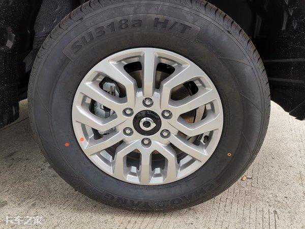 轮胎采用朝阳SU318a轮胎,尺寸为245/70R17轮胎,该款轮胎为全天候轮胎,集越野通过性、公路舒适性和湿地安全性于一身,纵向的花纹沟槽和曲折钢片排列设计,可以确保轮胎雨雪天气的排水性能和抓地性能。