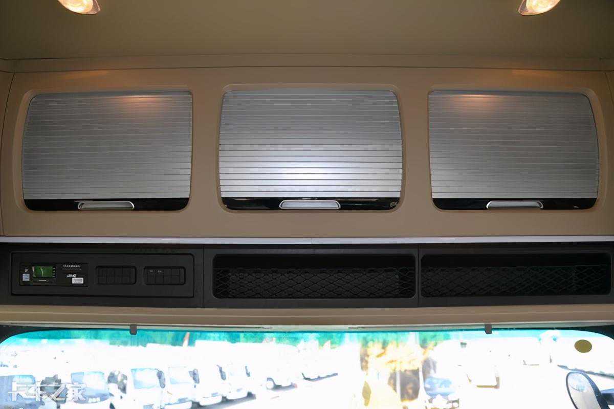 头顶和众多牵引车一样,设置了三个尺寸可观的储物箱,面板采用了铝合金的材质,不仅有效地提升了内饰质感,同时还最大程度的加强了部件的使用寿命,让盖板更加耐久。