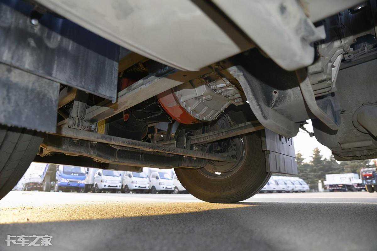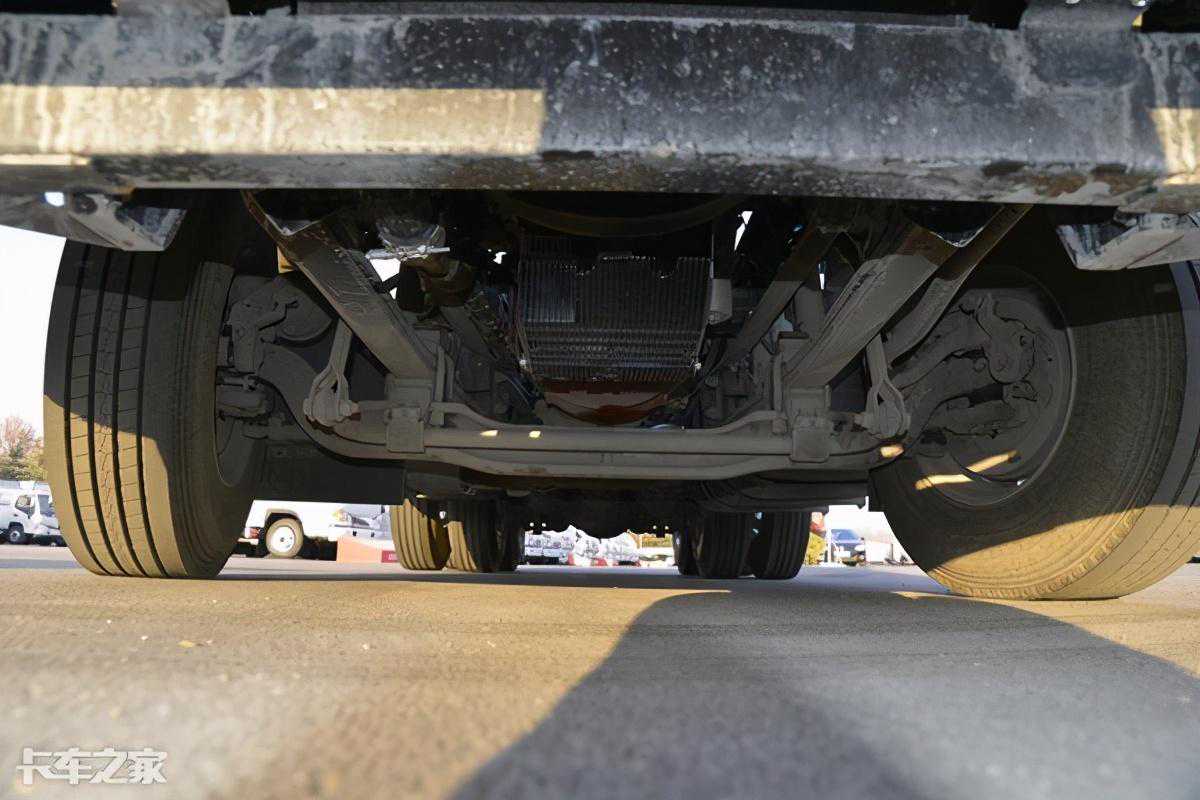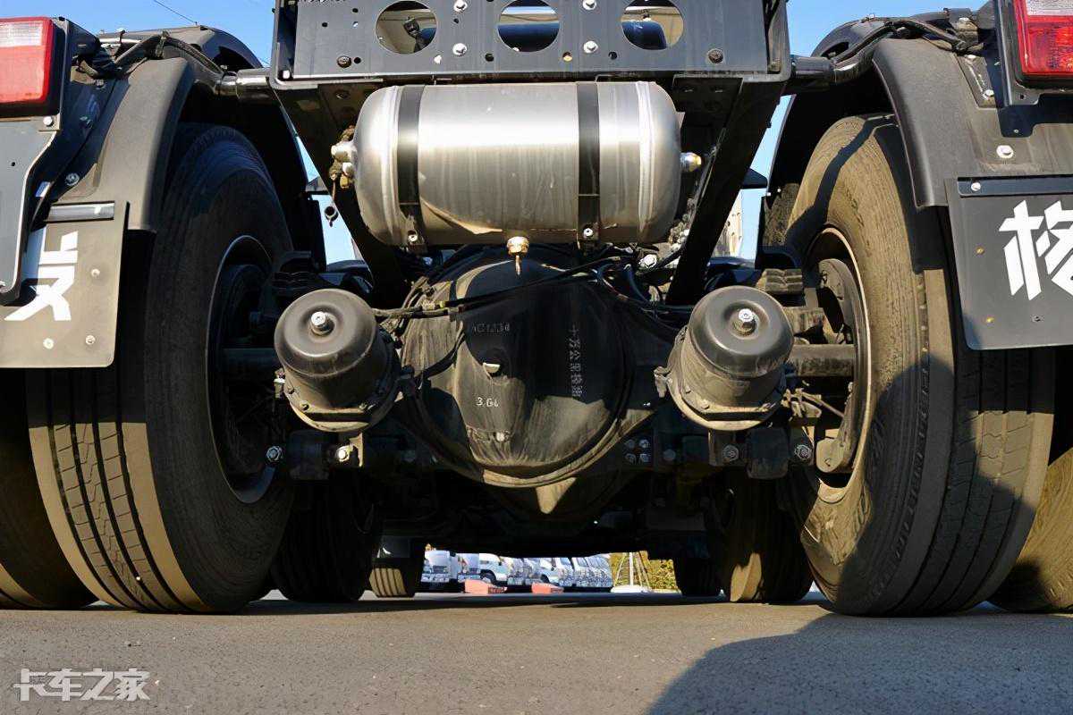 A5W前后均采用了钢板弹簧悬挂,钢板设定为前2后3,比较常规的片数设置,同时后桥为十万公里的长换油设定,进一步提升了车辆的出勤率。后桥速比为3.64+510马力发动机+采埃孚的直接档变速箱,让A5W足以应付山路国道、以及云贵川地区的运输工况,AMT也让跑山更加更加轻松,不用频繁的自己加减挡。