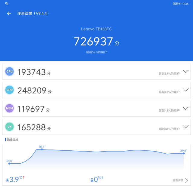 为了测试其实际性能,我们准备了跑分与游戏测试两项。首先使用主流跑分软件安兔兔对联想小新PadPro2022进行了跑分测试。从结果来看,72万分的成绩说明其已经达到旗舰级芯片的水平,而且该成绩完成日常工作、娱乐、学习等应用绰绰有余。