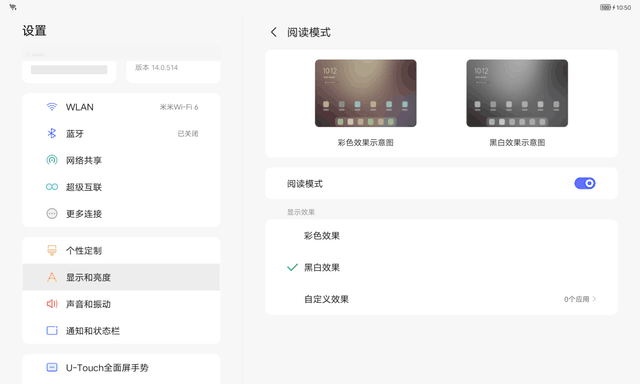 不仅如此,该款平板还可以在黑白和彩色两种模式选择,亦可可按应用自动触发阅读模式。由于通过莱茵TUV低蓝光护眼认证,所以舒适的阅读模式,让平板瞬间变成你的电纸书。