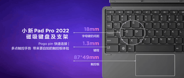 联想联想小新PadPro2022定制了磁吸键盘及支架,除了pogopin快速连接让平板可以一插即用变身超轻薄笔记本,1.3毫米键程、18毫米键距和触控板设计,保留了联想笔记本的键面布局和按键手感,同时键盘还支持12颗快捷键和13套组合键,更贴合用户的使用习惯,全面提升学习和办公的效率。