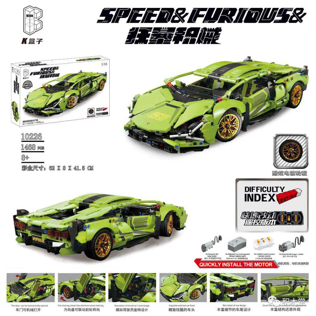 11款,以积械狂飚一个系列,不停出跑车,其中的二台1:8跑车是作者授权,很好看!