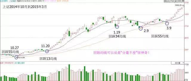 其中最主要的是:回踩均线时34、55均线的“斜率”。如果在34或者55均线附近出现标志K线并且配合标志量站上中线组为佳.