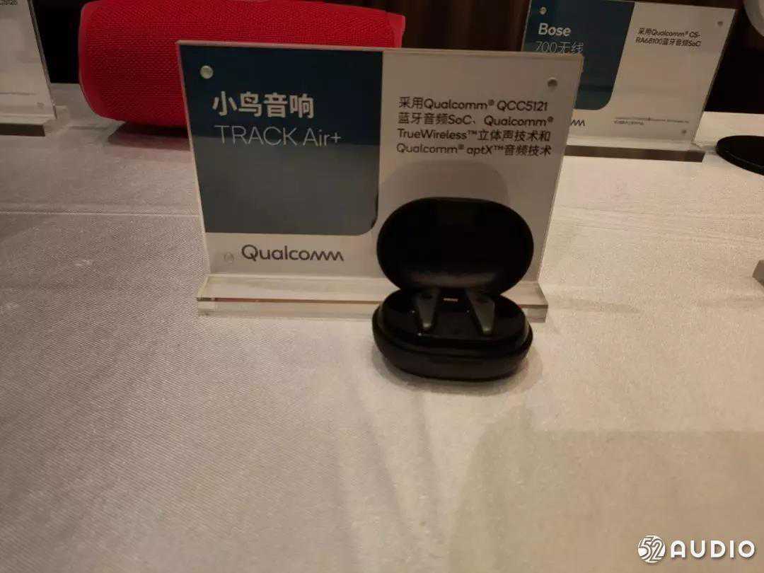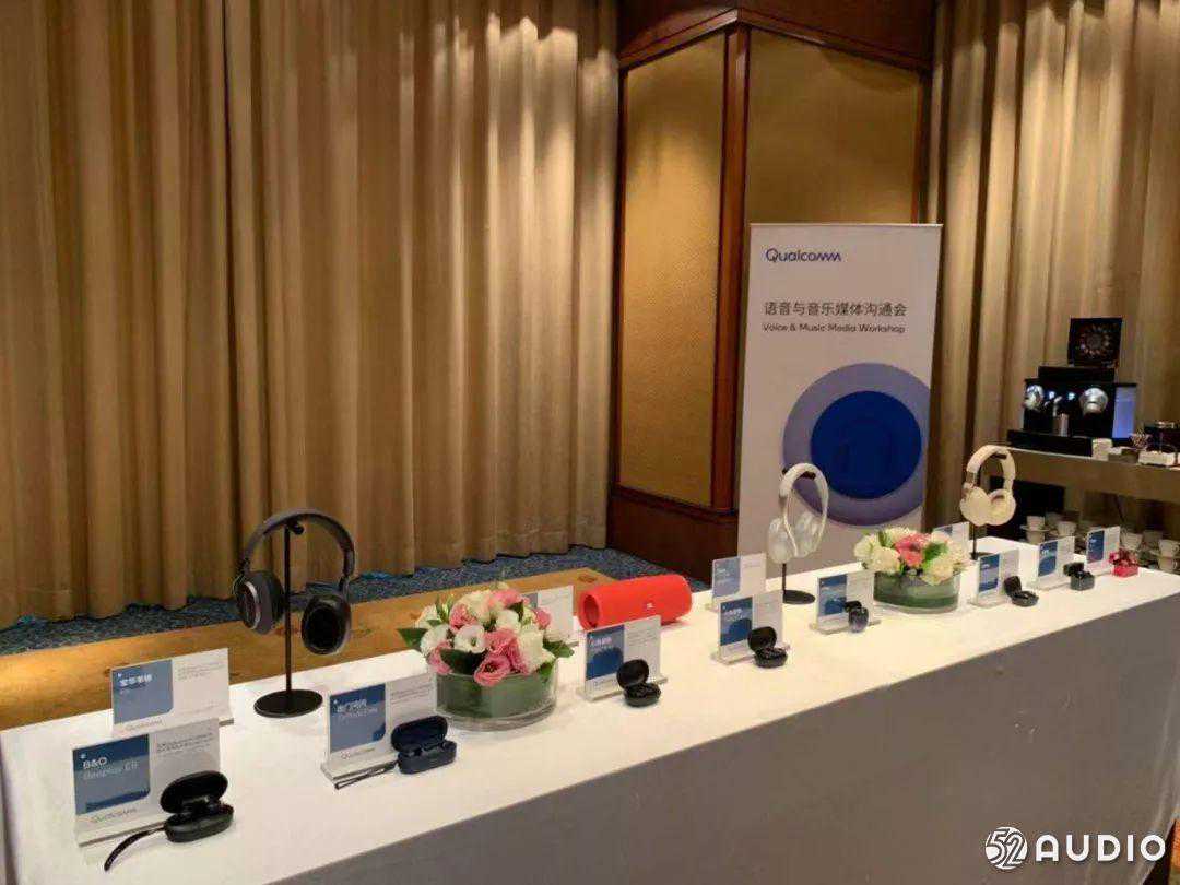 沟通会现场的展台展示了应用高通芯片的最新的TWS(真无线立体声)耳机,头戴耳机,蓝牙音箱三类重要的无线音频产品,这些产品全都搭载了高通蓝牙音频芯片。