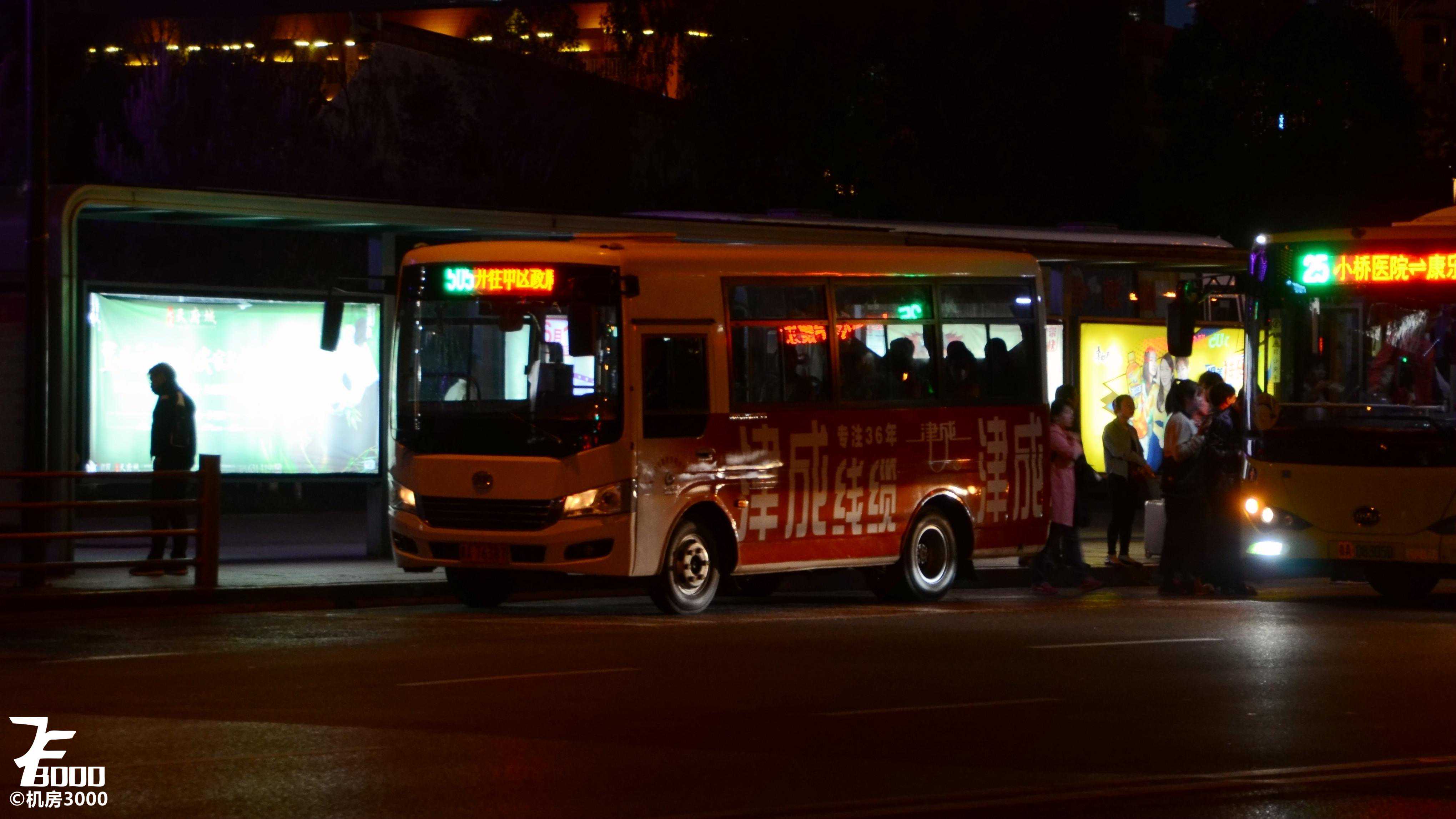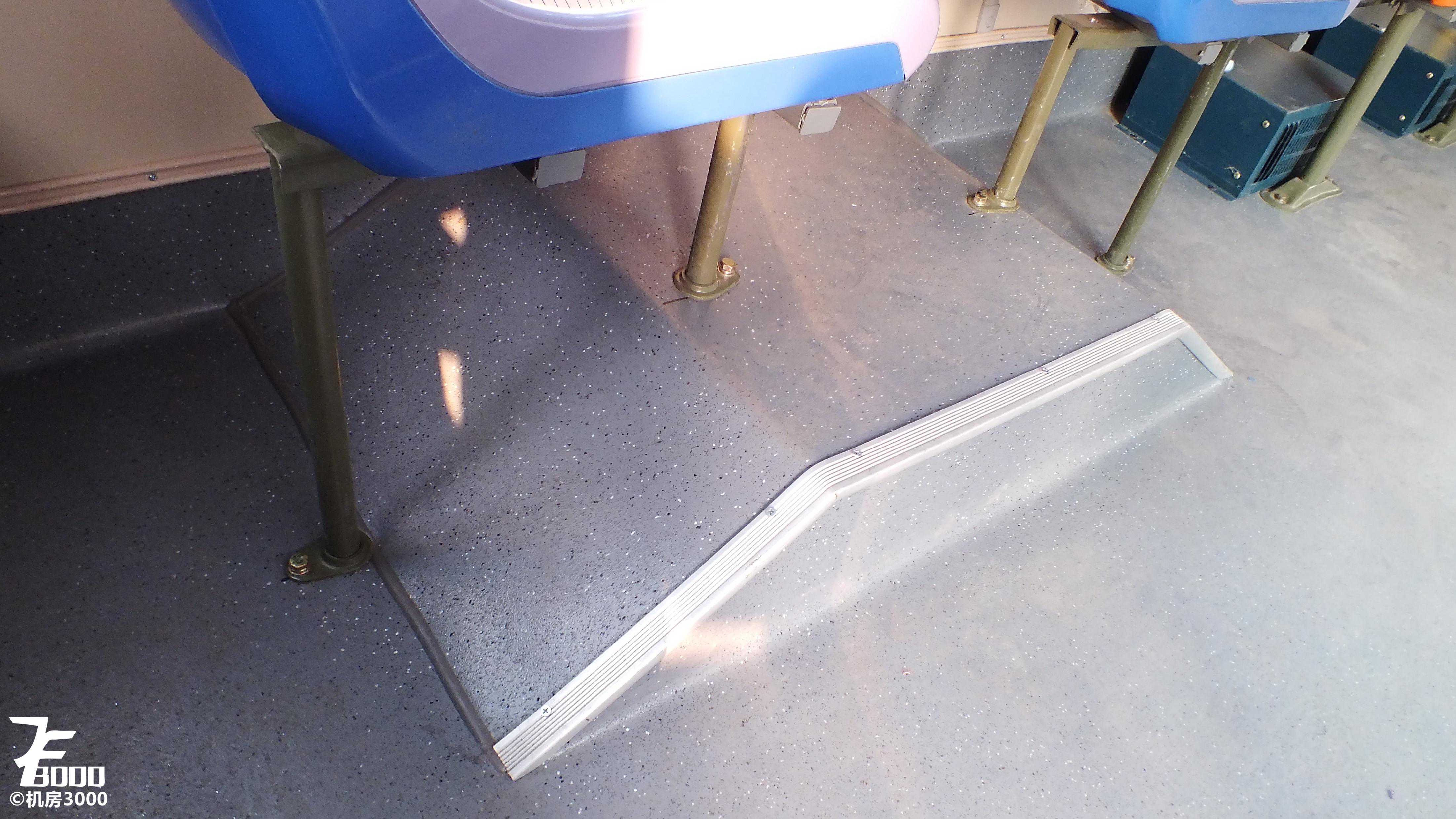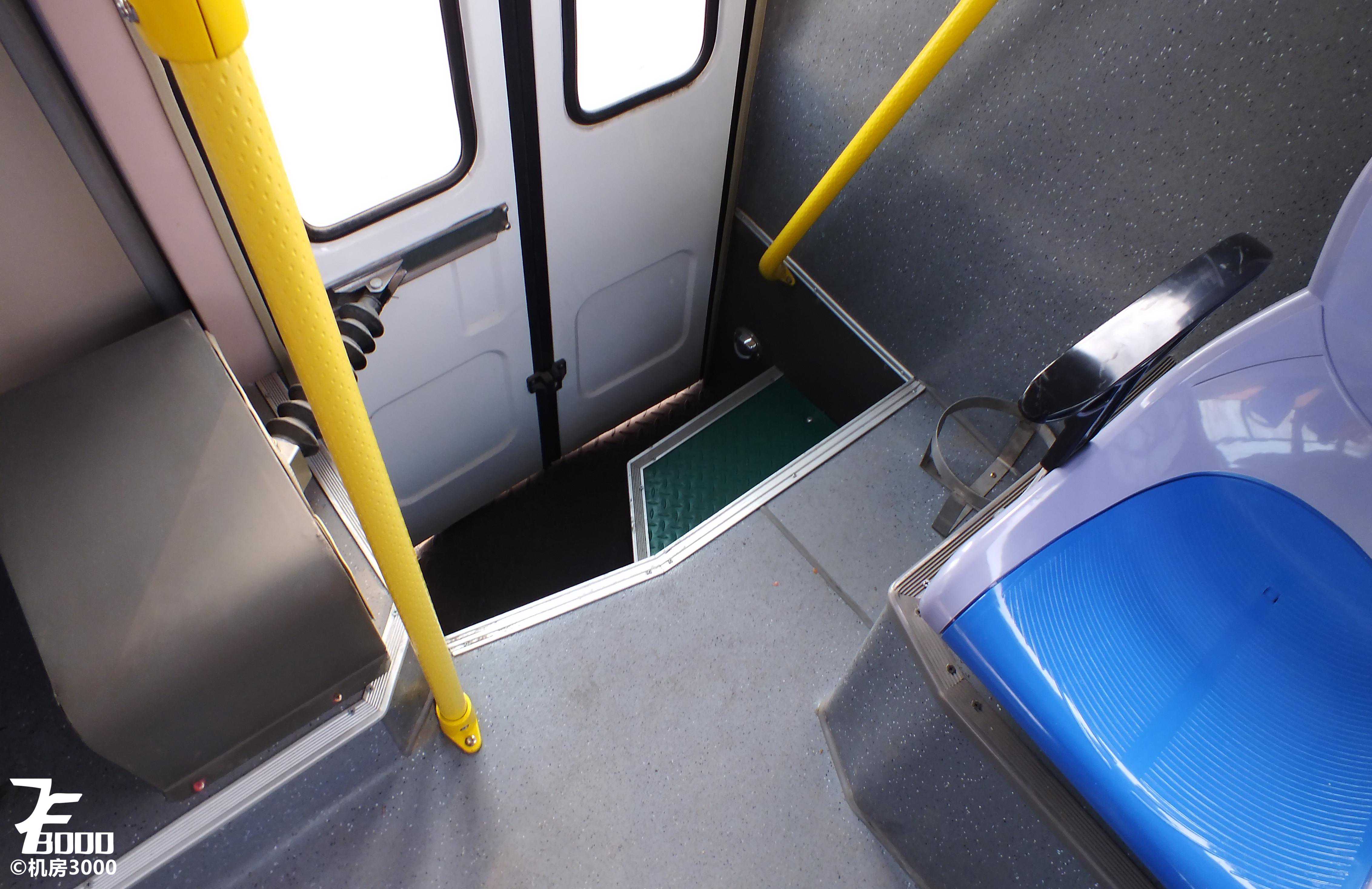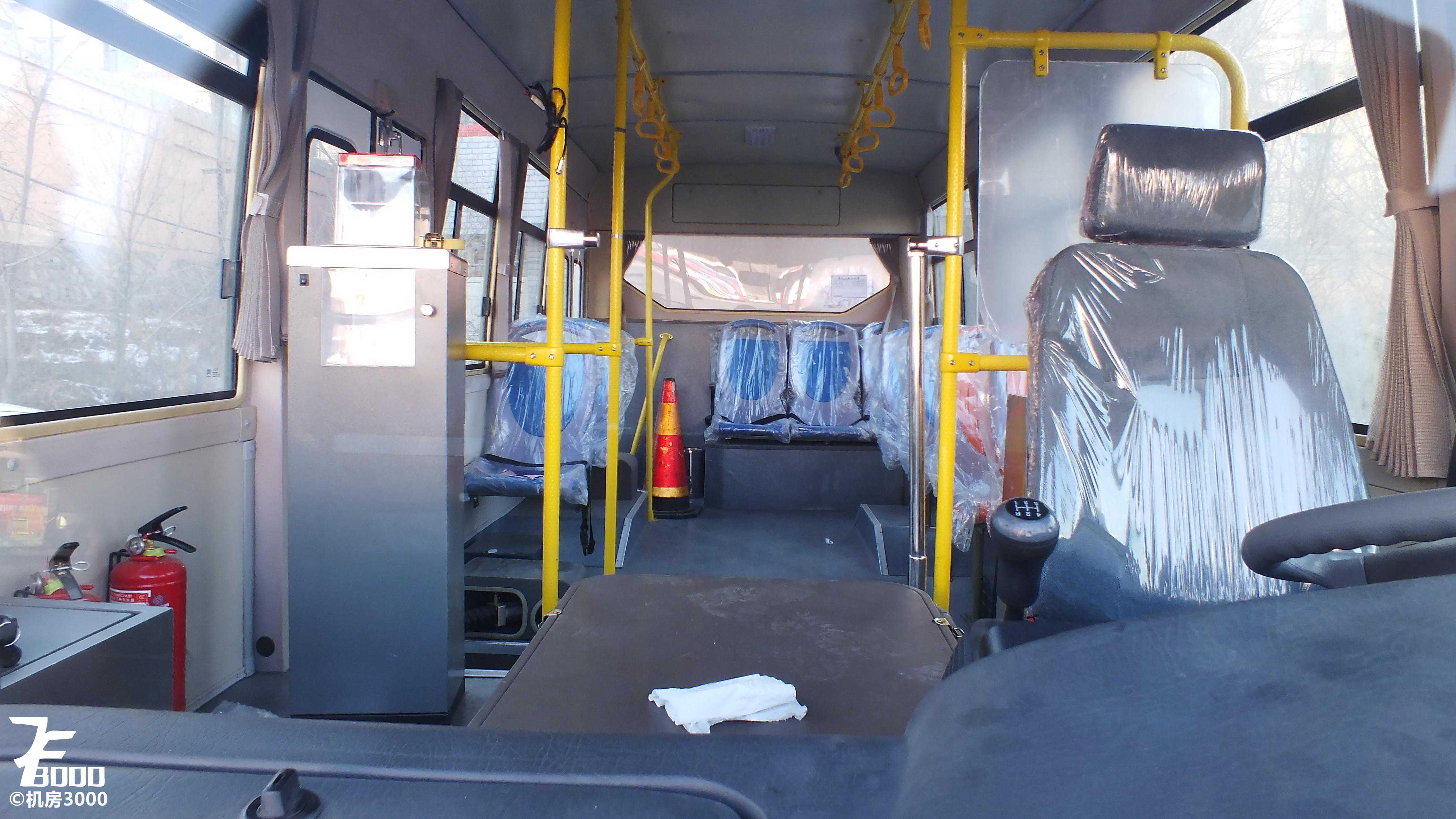 车内1+1布局,最后一排三座,座椅为春山硬塑桶座。由于是中后门布局,不仅浪费了大量空间,也不利于司机观察投币刷卡情况,而且后门空间非常局促,从后门下车的体验非常糟糕,其实对于6-7米的公交车,大鼻子造型更加合理,空间利用更加合理,上下车也方便,最近兴起的纯电动前中门布局则更优。车内高度尚可,一米八的乘客站在车内不需低头