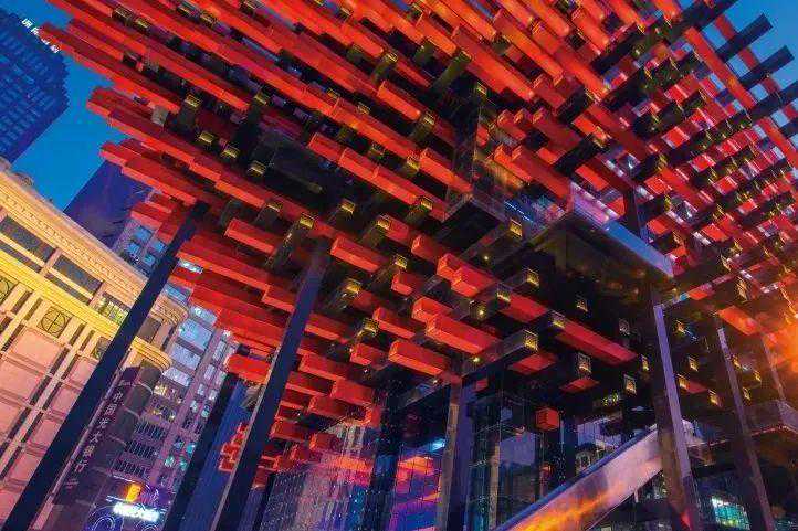 重庆来福士犹如“朝天扬帆”的航船。置于250米高空的水晶“空中连廊”上,可以俯瞰“8D魔幻”重庆,在高空的探索舱·云端乐园,还可夜晚伸手“摘星”,沉浸式感受重庆滨江的璀璨夜景。