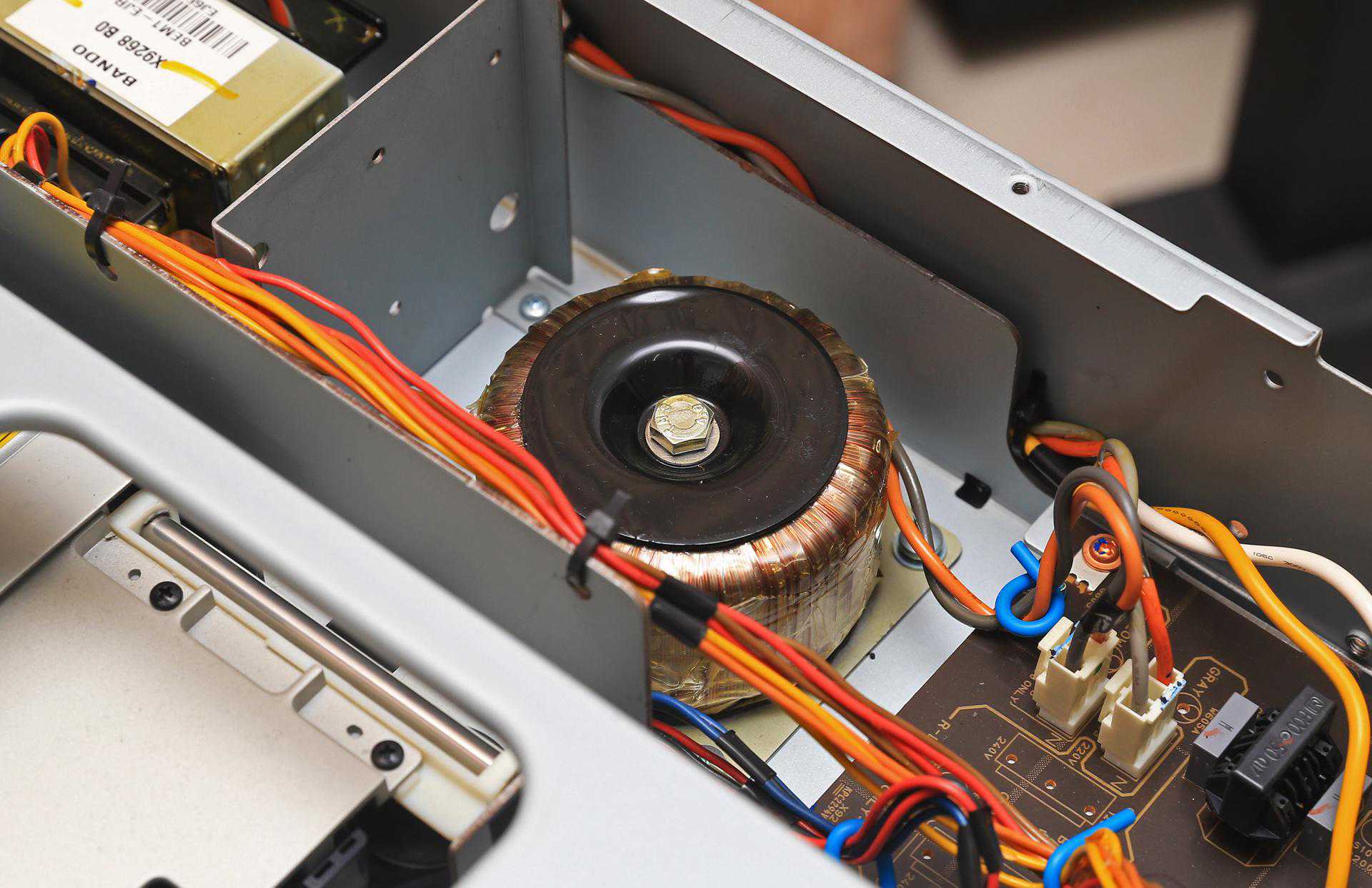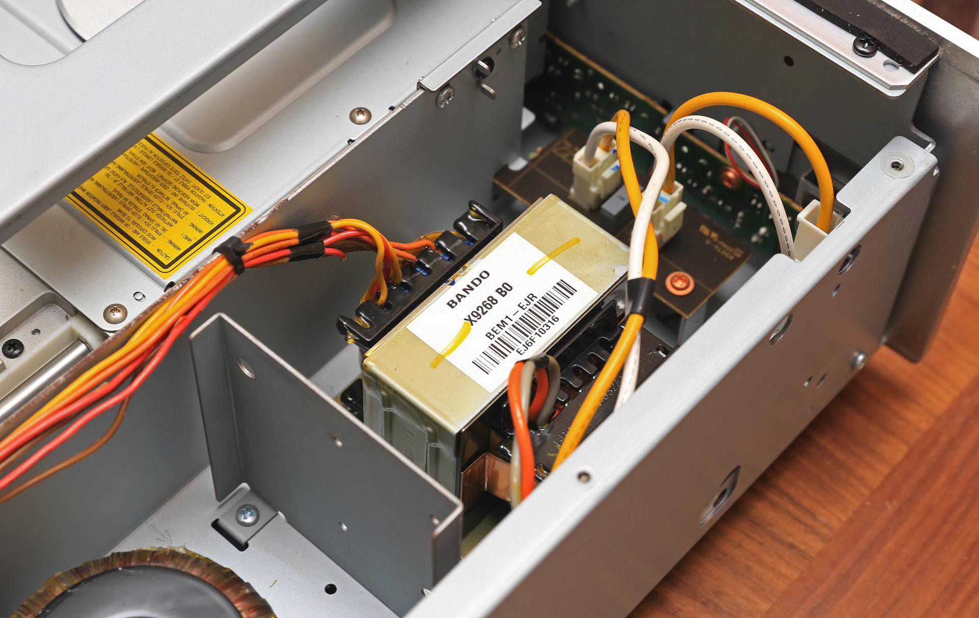 在屏蔽方面,雅马哈S2000也颇下功夫,打开盖子即可看到里面被划分为了几个区域,可以更好地更好地隔离电磁干扰。此外还可以看到有一片贯穿前后面板的横杆,可以更好地增强CD机箱的刚性,也可以在一定程度上减轻震动。